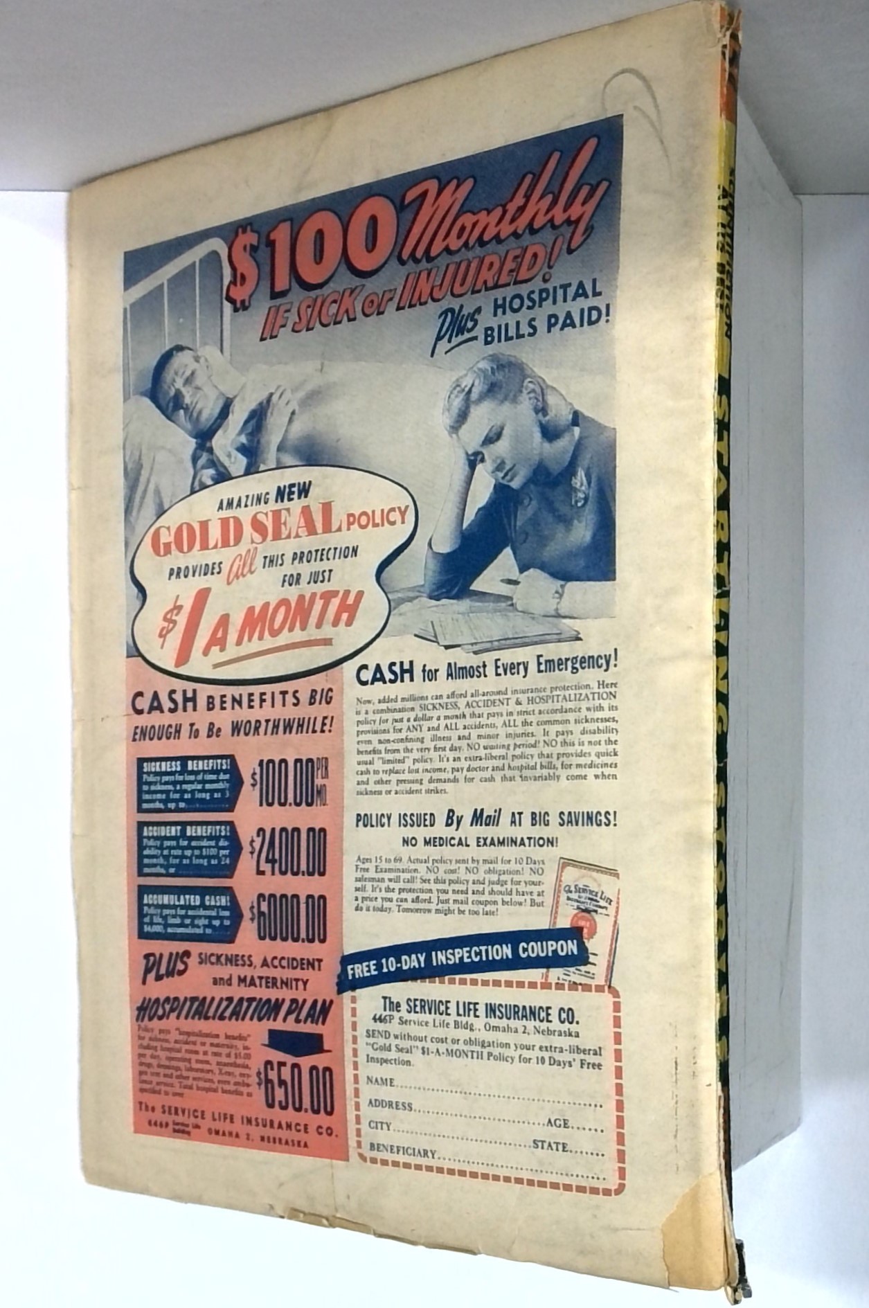 - Back cover detached 10%.