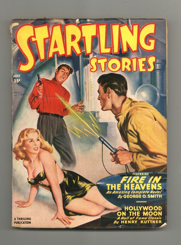 Volume 19, Issue 3 - July, 1949. Cover by Earle K. Bergey. Stories by George O. Smith, Henry Kuttner, Margaret St. Clair, Arthur C. Clarke, Ray Bradbury, L. Ron Hubbard (under the pseudonym Rene LaFayette), and C.M. Kornbluth. Two Virgil Finlay illustrations. 6.75-in. x 9.75-in.; black and white; 166 pages. Cover price $0.25.