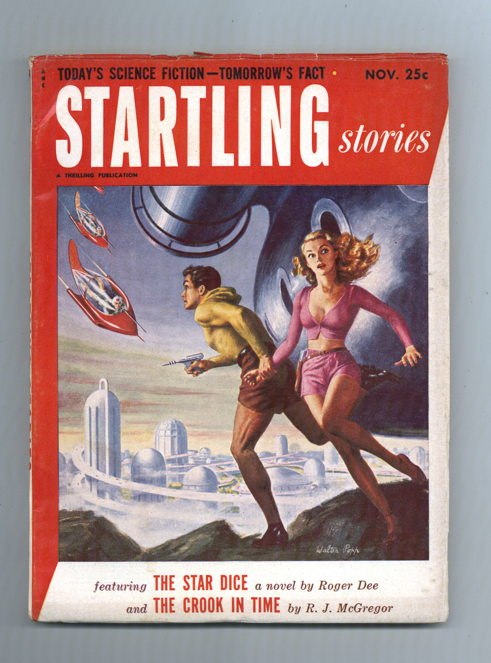 Volume 28, Issue 1 - November, 1952. Cover by Walter Popp. Stories: "The Star Dice" by Roger Dee, "The Crook In Time" by R.J. McGregor, "The Night The World Turned Over" by Joel Townsley Rogers, "Proposal" by L. Sprague de Camp, and "Some Like It Cold" by Dave Dryfoos. Softcover Pulp, 7-in x 9-in, 150 Pages, B&W. Cover price $0.25.
