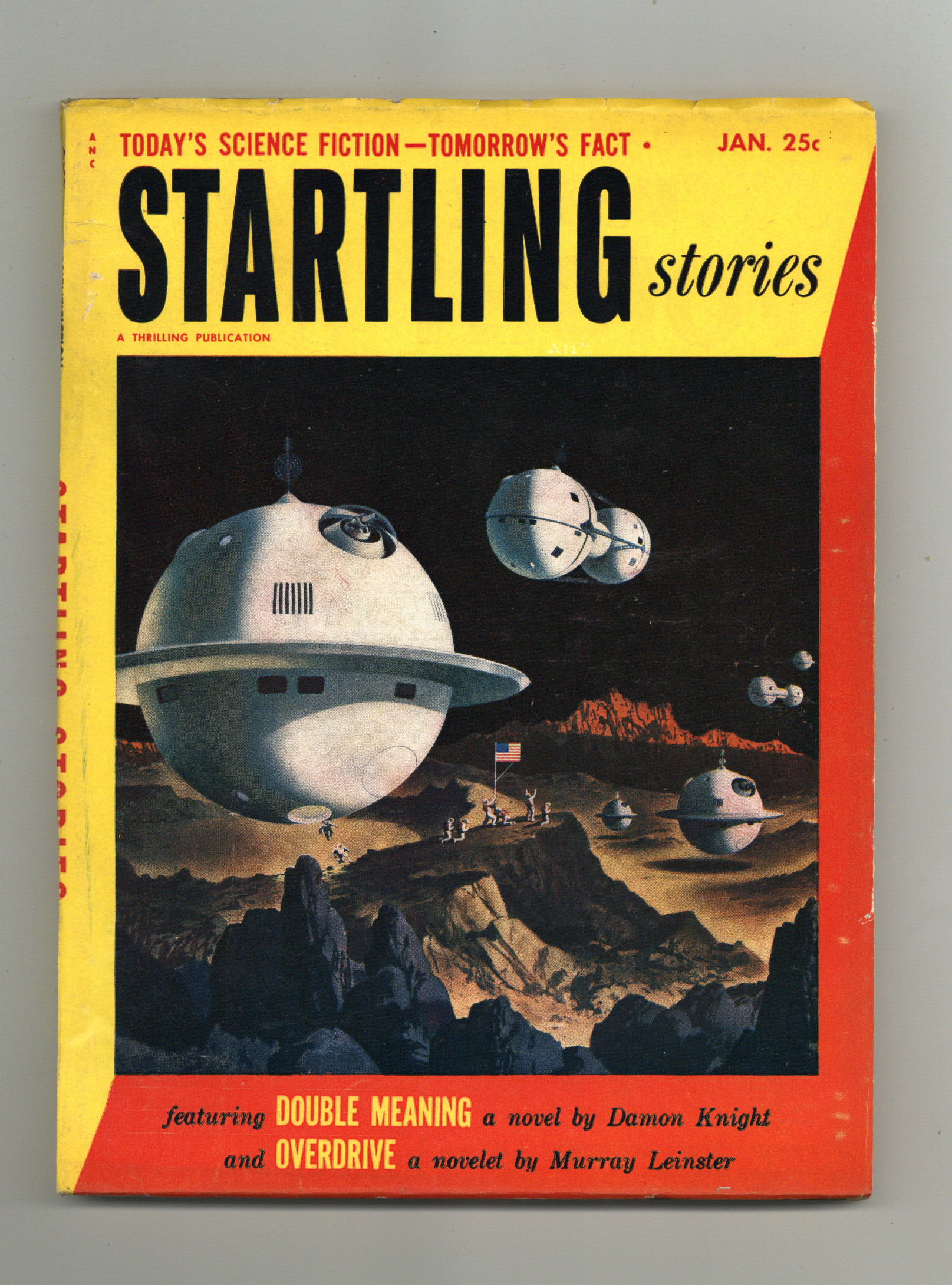 Volume 28, Issue 3 - January, 1953. Cover by Alex Schomburg. Stories by Damon Knight, Murray Leinster, James E. Gunn, Kendell Foster Crossen, Roger Dee, Isaac Asimov, Jack Lewis, and Jack Vance. Virgil Finlay (2), Emsh, and Alex Schomburg illustrations. 6.75-in. x 9.75-in.; black and white; 150 pages. Cover price $0.25.