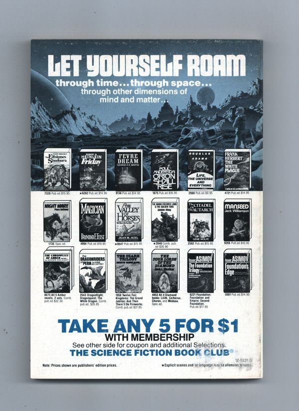 Published Sep 1983 by Dell Magazines.$4.20September 1983. Stories: "The New Untouchables" (part 1) by Joseph H. Delaney, "In Whose Name Do We Seek the Quark?" by Thomas R. Dulski, "The Reluctant Torturer" by Hayford Peirce, "Deborah's Children" by Grant D. Callin, and "Raccoon Reaction" by Joseph Green. Science Fact articles, "'Science and Creation" by Poul Anderson and "Again Monopoles" by John G. Cramer. Cover by Paul Lehr. Illustrations by Paul Lehr, Broeck Steadman, and Brad Hamann. Softcover, 5.5-in. x 7.5-in.; 178 newsprint pages, B&W. Cover price $1.75.