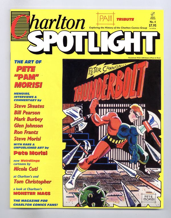 $9.00Printings may vary. Exploring the legacy of 20th-century publisher Charlton Comics Group. This issue features a tribute to Pete Pam Morisi, creator of Thunderbolt, with articles by Steve Skeates and Ron Frantz, and rare and unpublished Morisi art. Also, a feature on Charltons monster magazines, and a rumination by Tom Christopher about Charltons final days. Black and white; 76 pages. Cover by Morisi. Cover price $7.95. Cover price $7.95.