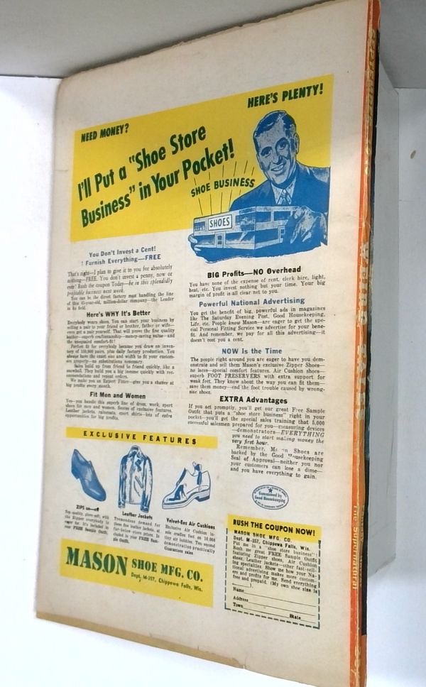 Sept 1949. Cover by Michael Lebonski. Horror and supernatural stories by Theodore Sturgeon "One Foot and the Grave", Allison V. Harding, Gardner F. Fox, Ewen Whyte, August Derleth "The Slayers and the Slain", Mary Elizabeth Counselman, Seabury Quinn, Malcolm Kenneth Murchie, and Dorothy Quick. Illustrations by Lee Brown Coye, Vincent Napoli, and John Giunta. 6 3/4-in. x 10-in.; black and white; 96 newsprint pages. Cover price $0.25.