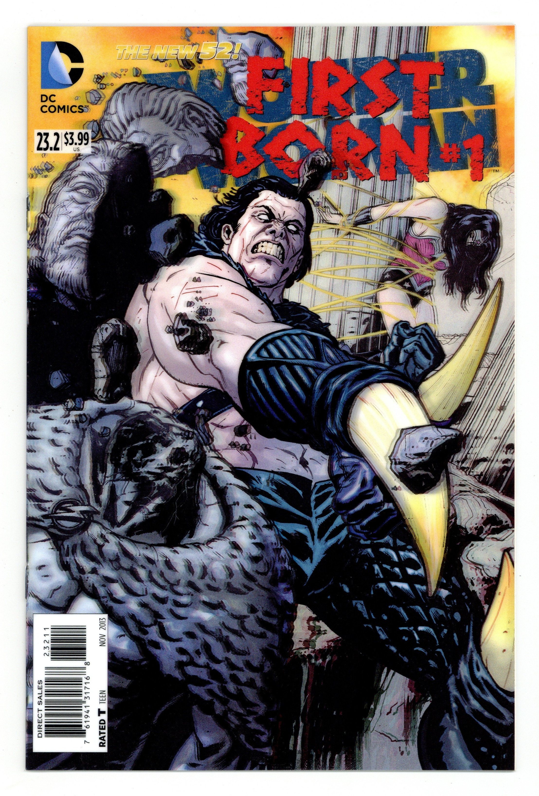 $14.003-D Motion Cover. (W) Brian Azzarello. (A) Aco. (CA) Victor Ibanez. The First Born son of Zeus-Wonder Woman's oldest brother-has returned to claim the throne of Olympus! But it's been a long and bloody road to reach his destiny...and you won't believe the horror when you meet the rest of Wonder Woman's extended "family"! Cover price $2.99.