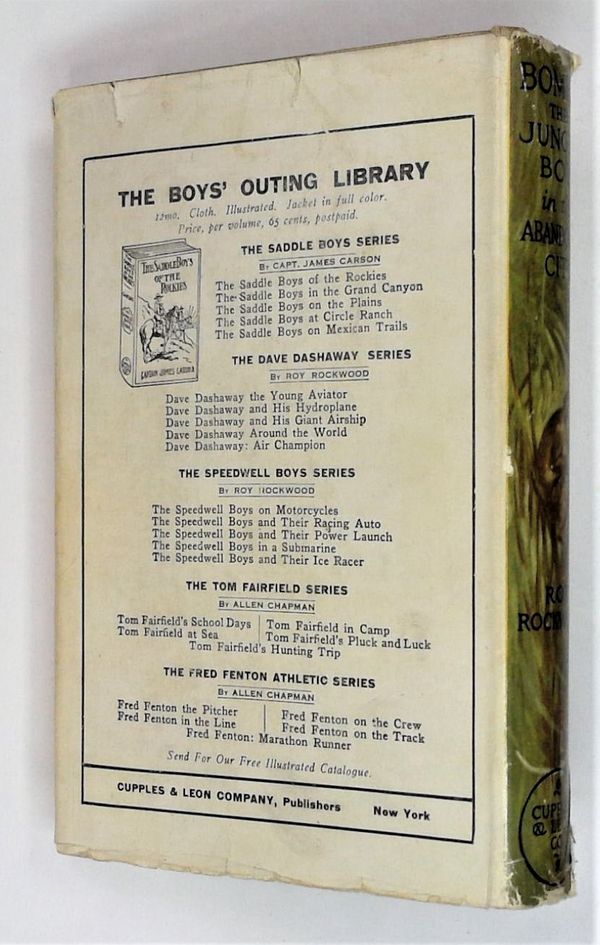 Published 1927 by Cupples & Leon.$52.001st Edition, Volume 5 "The Abandoned City!" - Written by "Roy Rockwood". Hardcover with dust jacket, 5 1/2-in. x 7 1/2-in., 208 pages, B&W.