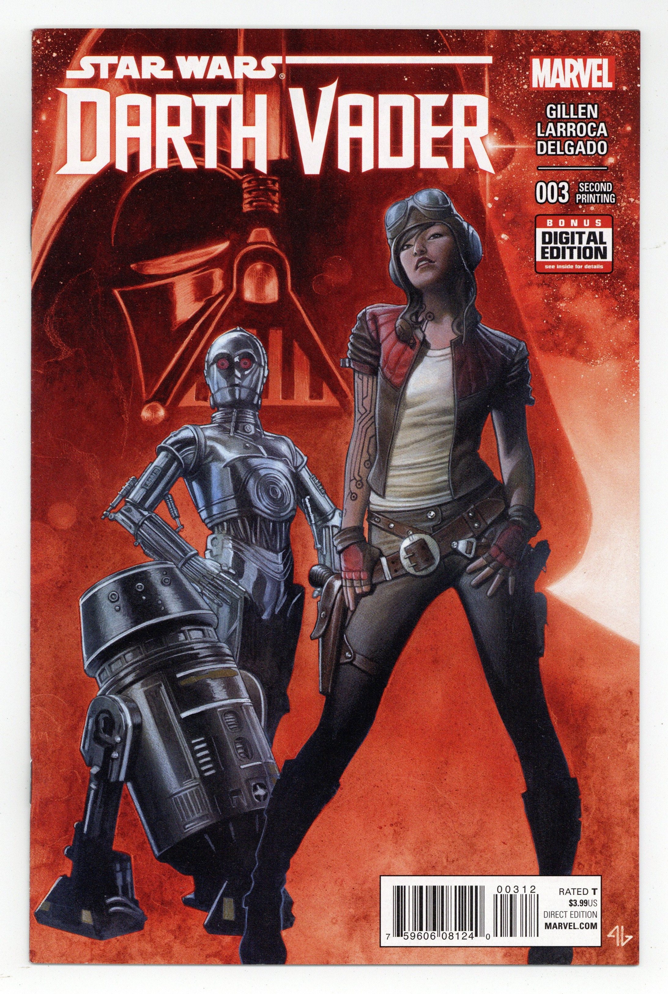 2nd Printing - Written by Kieron Gillen. Art by Salvador Larroca. Cover by Adi Granov. When a Dark Lord needs help, who can he turn to? Meet Aphra-the galaxy's foremost raider of lost weaponry! Plus: could these be the deadly droids she's looking for? 28 pages, full color. Rated T Cover price $3.99.