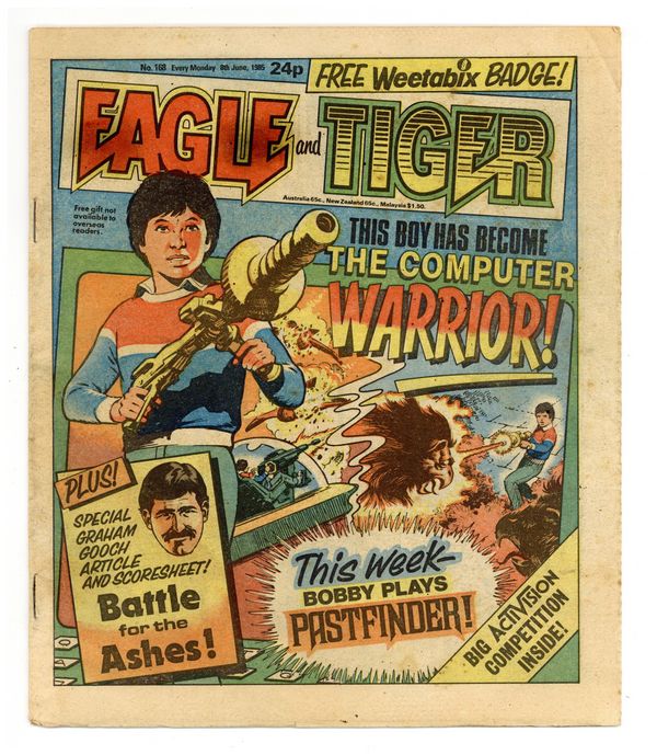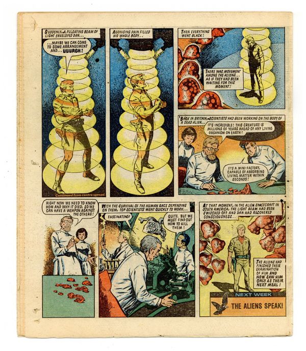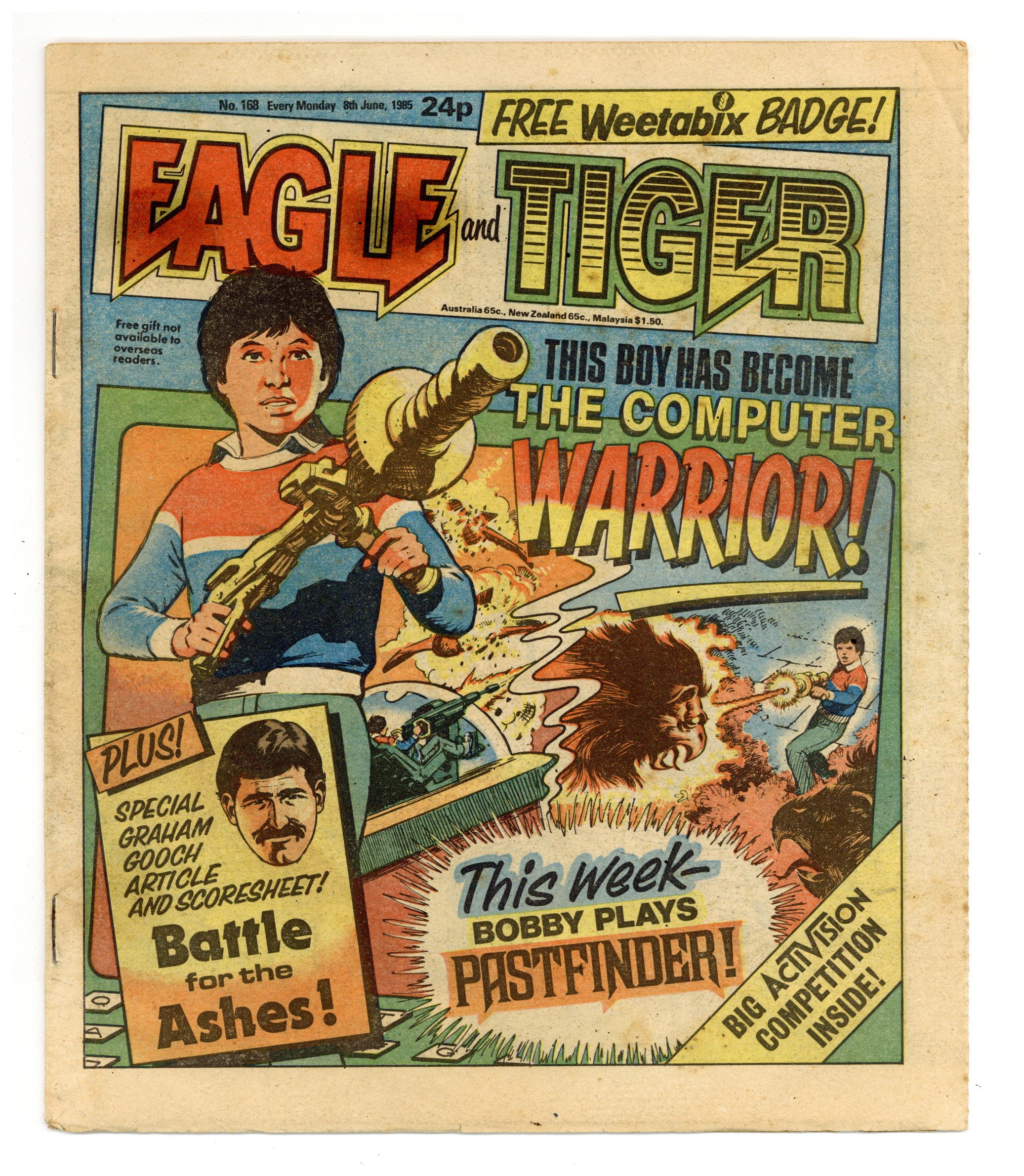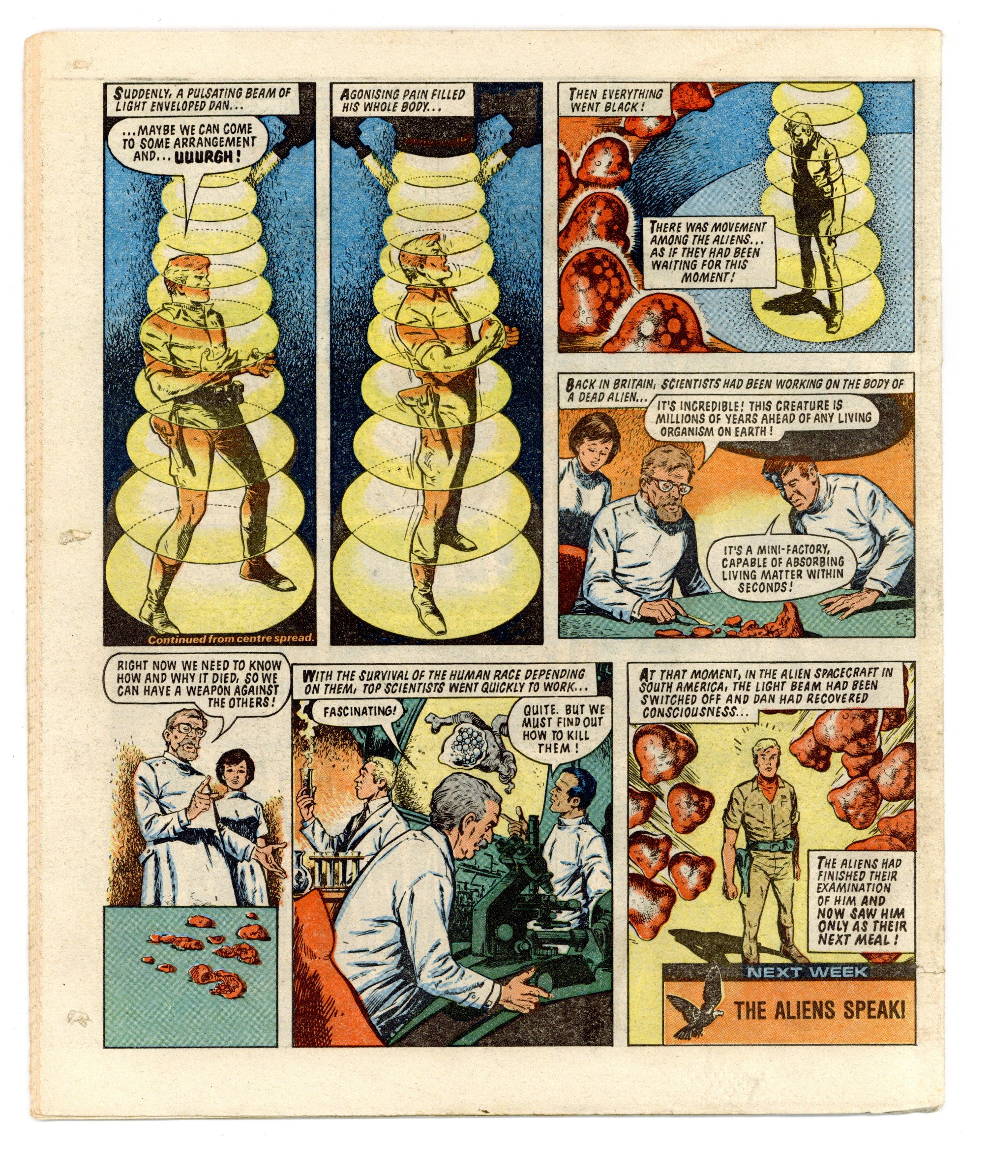 Dan Dare, plus other features. Published in the United Kingdom, 8-1/2-in. x 11-1/2-in, 32-pages including cover, all newsprint stock. Mix of color and black/white interior. NOTE: Cereal Buddy Badge may or may not be present (only effects issues originally distributed in the UK). Also, the badge was originally taped to cover by publisher and any normal effects (tape residue) resulting from this are not considered a defect.