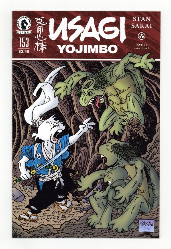 Published Mar 2016 by Dark Horse.$12.00Story, Art and Cover by Stan Sakai. In his effort to save a village, Usagi's fate takes a turn when he must defend a kappa-a supernatural creature that would normally be his enemy-from an even deadlier threat: a renegade of its own species! The trail leads him to the monster's lair with his only weapons: two swords and some cucumbers! 24 pages, B&W. Cover price $3.99.