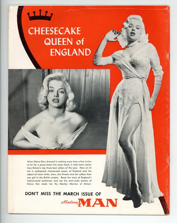 February, 1956 - Vintage Men's magazine featuring articles, pictorials, and pin-ups. This issue features a Donna "Busty" Brown cover, and pictorial, a look at Italian sports car designer Enzo Ferrari, and "The Toughest Guy in Hollywood" Jack Palance! 8.5" x 11", 50 pages, B&W. MATURE READERS Cover price $0.50.