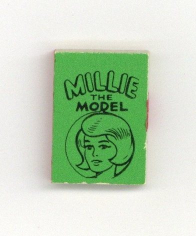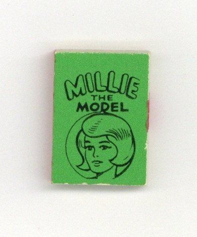 The Millie the Model Marvel Mini Book is one in a set of 6 released in 1966 via gumball vending machines. These are the smallest "comics" ever made, measuring just 5/8-in. x 7/8-in. with 50 black-and-white interior pages, and glossy covers (in various bright background colors). Whereas the Wham-O Giant Comics is the largest comics series ever produced (about full newspaper dimensions), this little Marvel Mini series of six represents the world's smallest comics set! The complete Marvel Mini Books series featured one book each for: Captain America, the Hulk, Millie the Model, Sgt. Fury, and Spider-Man, and Thor. Each title was released in six different colors (Blue, Green, Lime, Orange, Red and Yellow). NOTE: Way back in 1966, Buddy Saunders, Lone Star Comics/mycomicshop.com's owner bought several bags of these little gems. Over the years, he gave many away to customers who placed back issue orders, and sold other for $5 to $10 each as they grew scarce. Today, these tiny little comics are very difficult to find, but make a cool addition to any comics collection.