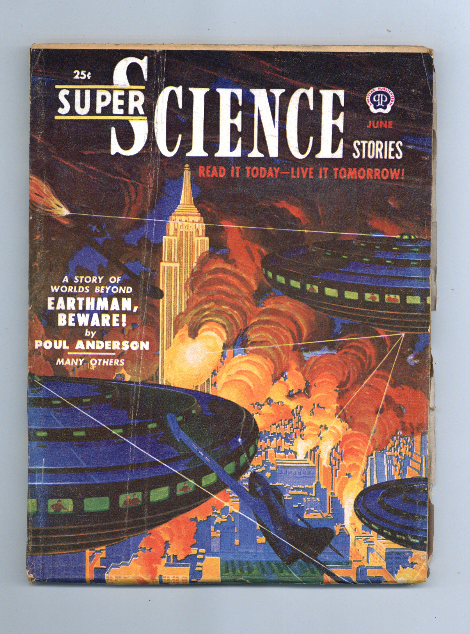 Volume 8, Isssue 2 - June, 1951. Cover by Van Dongen. Science Fiction stories: "Earthman, Beware!" by Poul Anderson, "Mutation" by Lilith Lorraine, "Oblivion Quest" by Wilbur S. Peacock, "Escape to Chaos" by John D. MacDonald, "Cosmic Knot" by John D. MacDonald (as Peter Reed), "Star Slave" by William Morrison & Harry Nix, and "It Happened Tomorrow" by Robert Bloch. Illustrations by Savage, Van Dongen, Bok, and Lawrence. 6.75" x 9.75", 116 pages, B&W. Cover price $0.25.