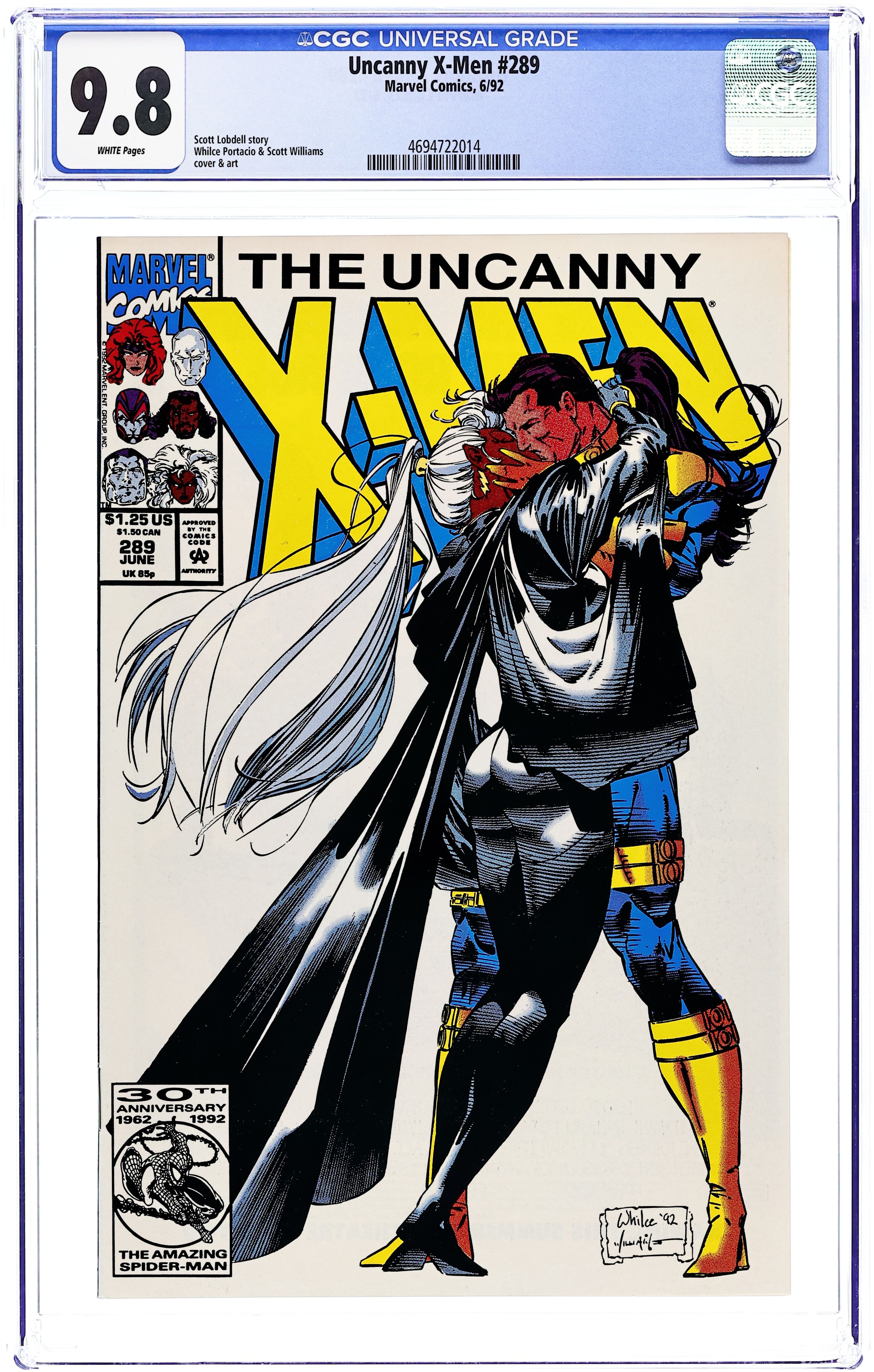 "Knots!" Part 1 of 2. Story by Scott Lobdell. Art and cover by Whilce Portacio and Scott Williams. The X-Men take a moment to recuperate after the events of recent days. Bishop walks among the heroes of his yesterday. Archangel confronts a former enemy. Ice Man's past comes back to haunt him. And, Forge drops a bomb, figuratively, on Storm. 36 pgs. Cover price $1.25.