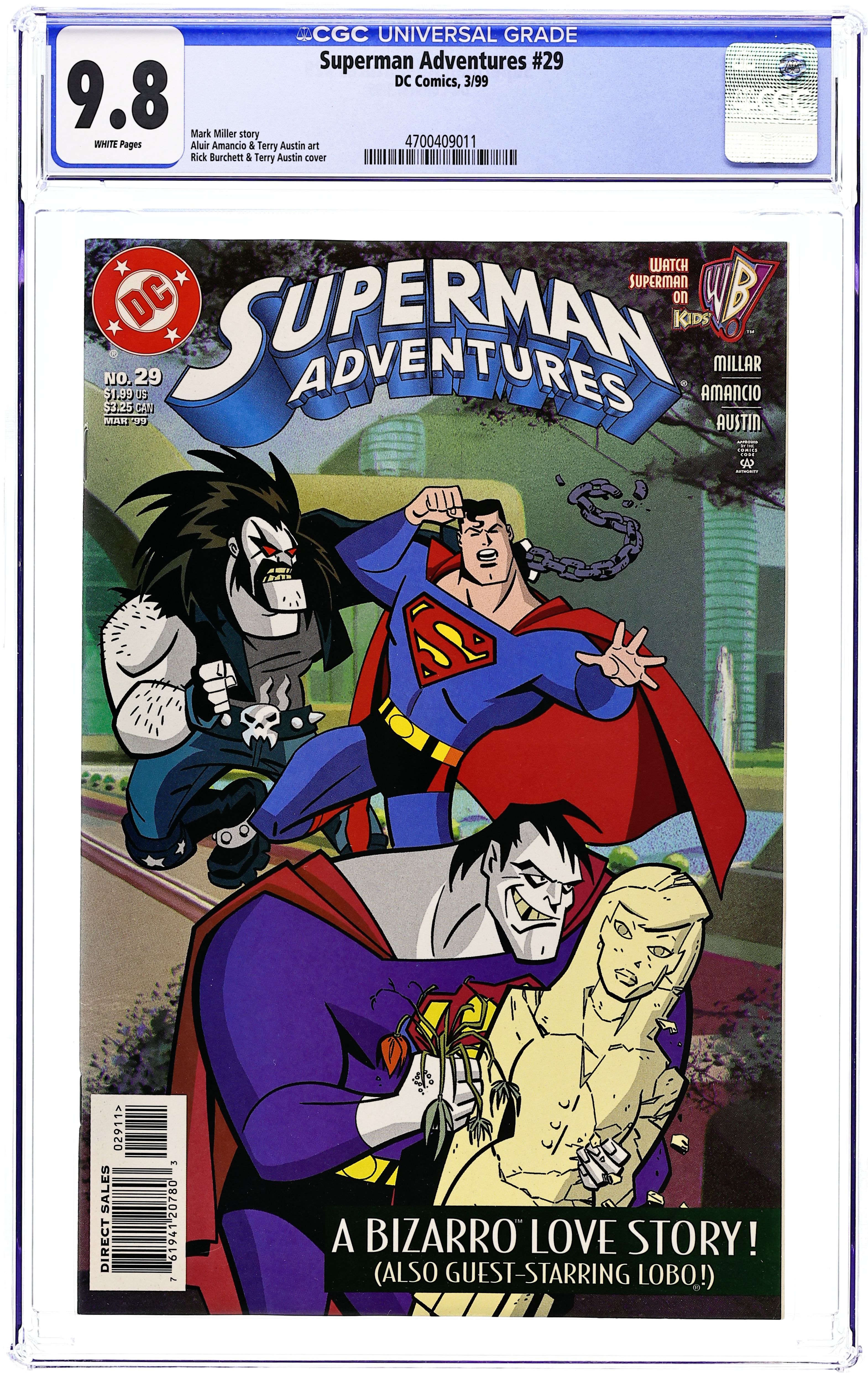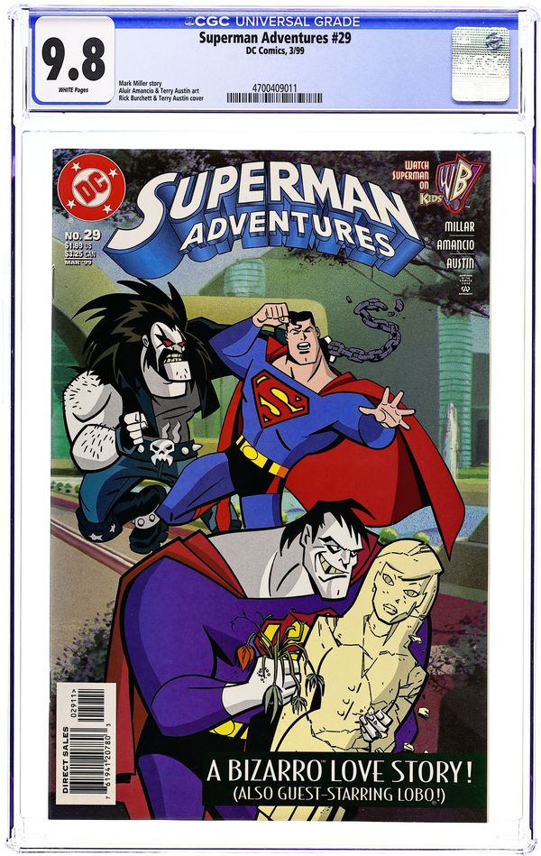 Cover pencils by Rick Burchett, inks by Terry Austin. Bride of Bizarro, script by Mark Millar, pencils by Aluir Amancio, inks by Terry Austin; Lobo brings Bizarro to Earth to stir up trouble for Superman, and Lois gets caught up in the action. Based on the WB cartoon series. 36 pgs. $1.99. Cover price $1.99.