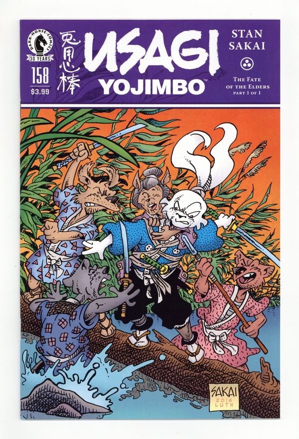 Story, Art and Cover by Stan Sakai. During an intense famine, Usagi comes across a mother and son being accosted by bandits. After rescuing them, he escorts them on a treacherous journey to reunite with her husband-to an outlying mountain range rife with unpredictable weather and aggressive, starving animals! Just when Usagi thinks all of their troubles are behind them, he learns their hidden secret . . . 24 pages, B&W. Cover price $3.99.