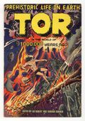 Cover by Joe Kubert. Stories and art by Joe Kubert, Alex Toth and Norman Maurer. Numbering continues from 3-D Comics Tor (1953 St. John) #2C. Comics legend Joe Kubert won fans early in his career with his tales of Tor, a caveman struggling for survival in a world where humans co-exist with dinosaurs. Tor tries to help a tribe escape a volcanic island that is collapsing into the sea. Tor defends a village from the raiding Flatnose tribe, and helps an all-female tribe settle differences with their neighbors. Co-creators Joe Kubert and Norman Maurer put themselves into the comic to discuss the science and history of the Tor series. Plus full-page dinosaur illustrations (including a pteranodon) by Kubert. Isle of Fire!; Snow Trap; Black Valley; 1,000,000 B.C. History of Prehistoric Animals: Pteranodon, Tylosaurus; Danny Dreams. 32 pages, Full Color. Cover price $0.10.