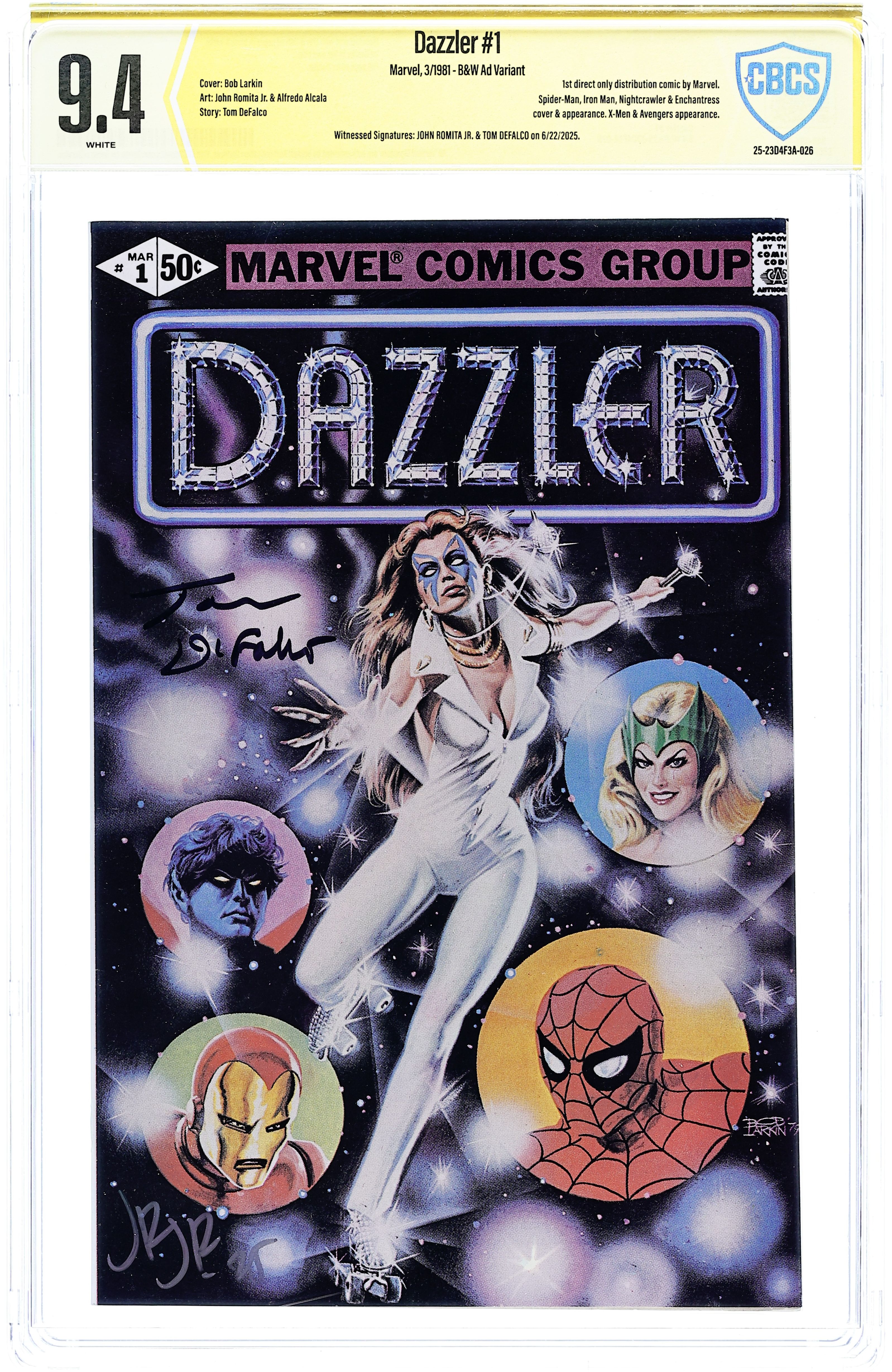 - Witnessed Signatures: John Romita Jr. & Tom DeFalco on 6/22/2025. B&W Ad Variant.