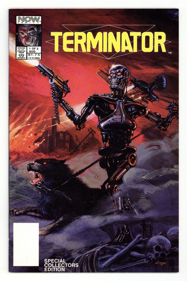 Direct Edition. "Special Collector's Edition" on cover. Story by Chuck Dixon. Art by Lenin Delsol. Cover by Diego. A miniseries prequel to the first Terminator movie. A dying plane crash survivor passes secret information to two young boys, with the instruction that they must get it to resistance leader John Connor if humanity is to survive the Terminators. 32 pages, Full Color. Cover price $1.75.