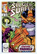 $43.00Direct Edition. Infinity Gauntlet: Prelude - "Epiphany!" Story by Jim Starlin. Art by Ron Lim and Tom Christopher. 1st appearance of the Infinity Gauntlet. Story continued from Thanos Quest (1990) #1-2. The Sentinel of the Spaceways and Drax the Destroyer combine their considerable might to battle Thanos. But the Mad Titan has acquired the Infinity Gems and now possesses nigh-omnipotent power. If they fail to defeat this despot, here and now, the universe is doomed! Cover price $1.00.