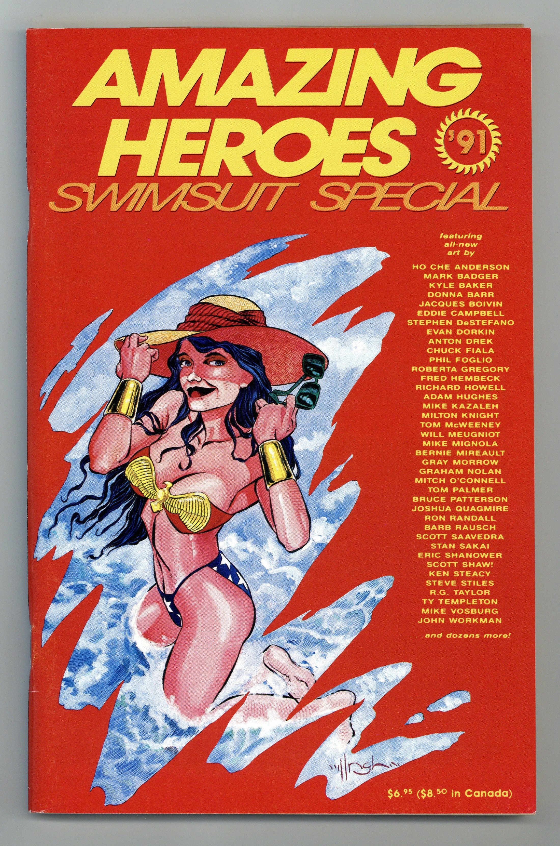Contributors include Ho Che Anderson, Mark Badger, Kyle Baker, Donna Barr, Eddie Campbell, Stephen DeStefano, Evan Dorkin, Phil Foglio, Roberta Gregory, Fred Hembeck, Richard Howell, Adam Hughes, Tom McWeeney, Will Meugniot, Mike Mignola, Bernie Mireault, Gray Morrow, Graham Nolan, Mitch O'Connell, Tom Palmer, Bruce Patterson, Ron Randall, Barb Rausch, Stan Sakai, Eric Shanower, Scott Shaw!, Ken Steacy, Ty Templeton, Mike Vosburg, John Workman, and many more. Cover price $6.95.