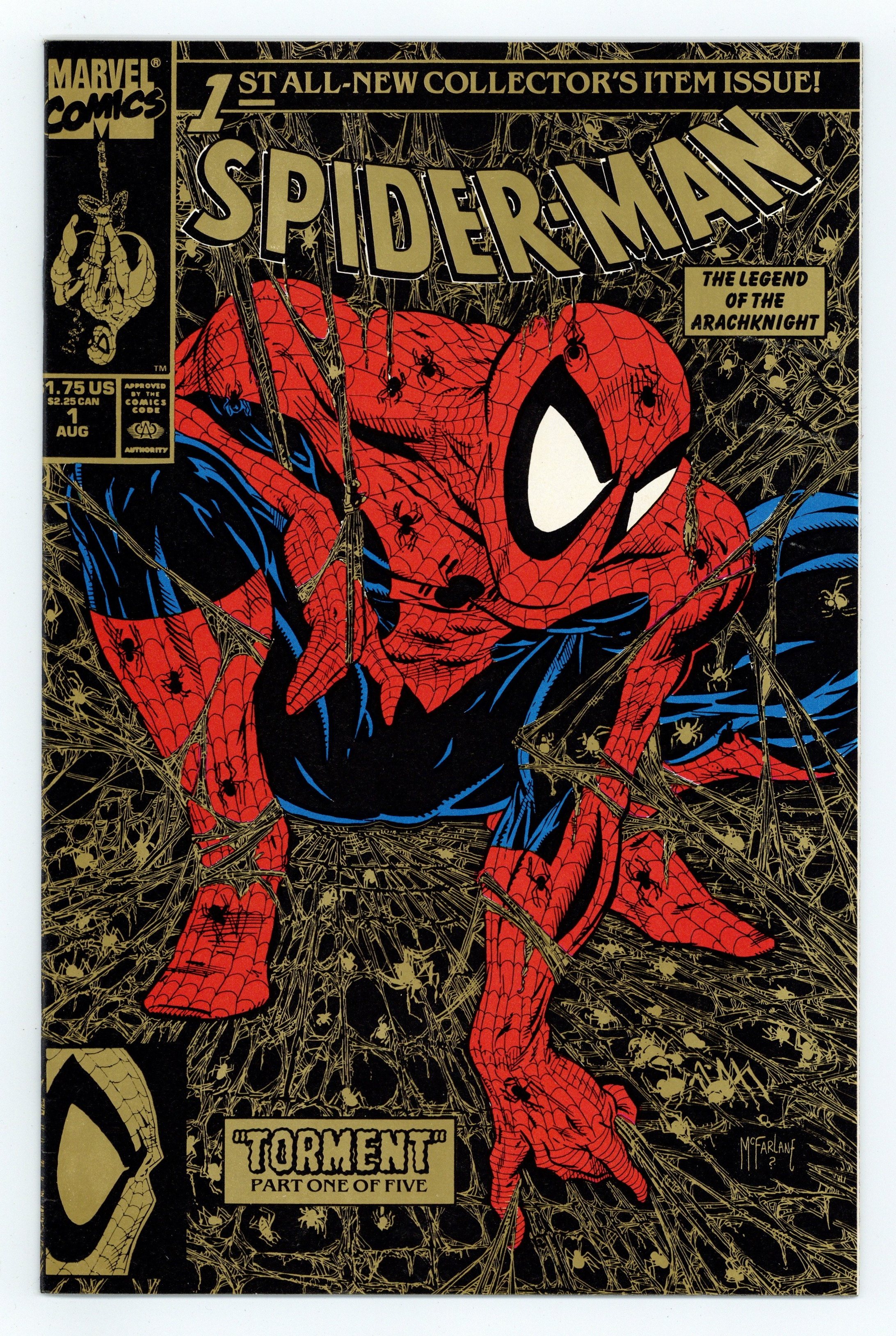 $40.002nd Printing, Black Cover with Gold Webbing. 2nd Printing, (Spidey's head in UPC box. This is NOT barcode version). Cover price $1.75.
