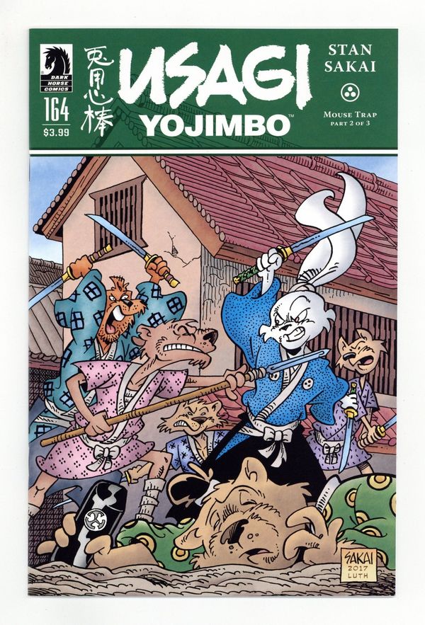 Published Dec 2017 by Dark Horse.$12.75Story, Art and Cover by Stan Sakai. Kidnapping! Embezzlement! Murder! Usagi is captured by the Black Goblin Gang as an investigation into corruption at the silver mint begins. As if things couldn't get messier, the head of the mint is also discovered-dead! With Nezumi the thief barely staying one step ahead of the law, will he be able to outlast them and their false accusations? 24 pages, B&W. Cover price $3.99.