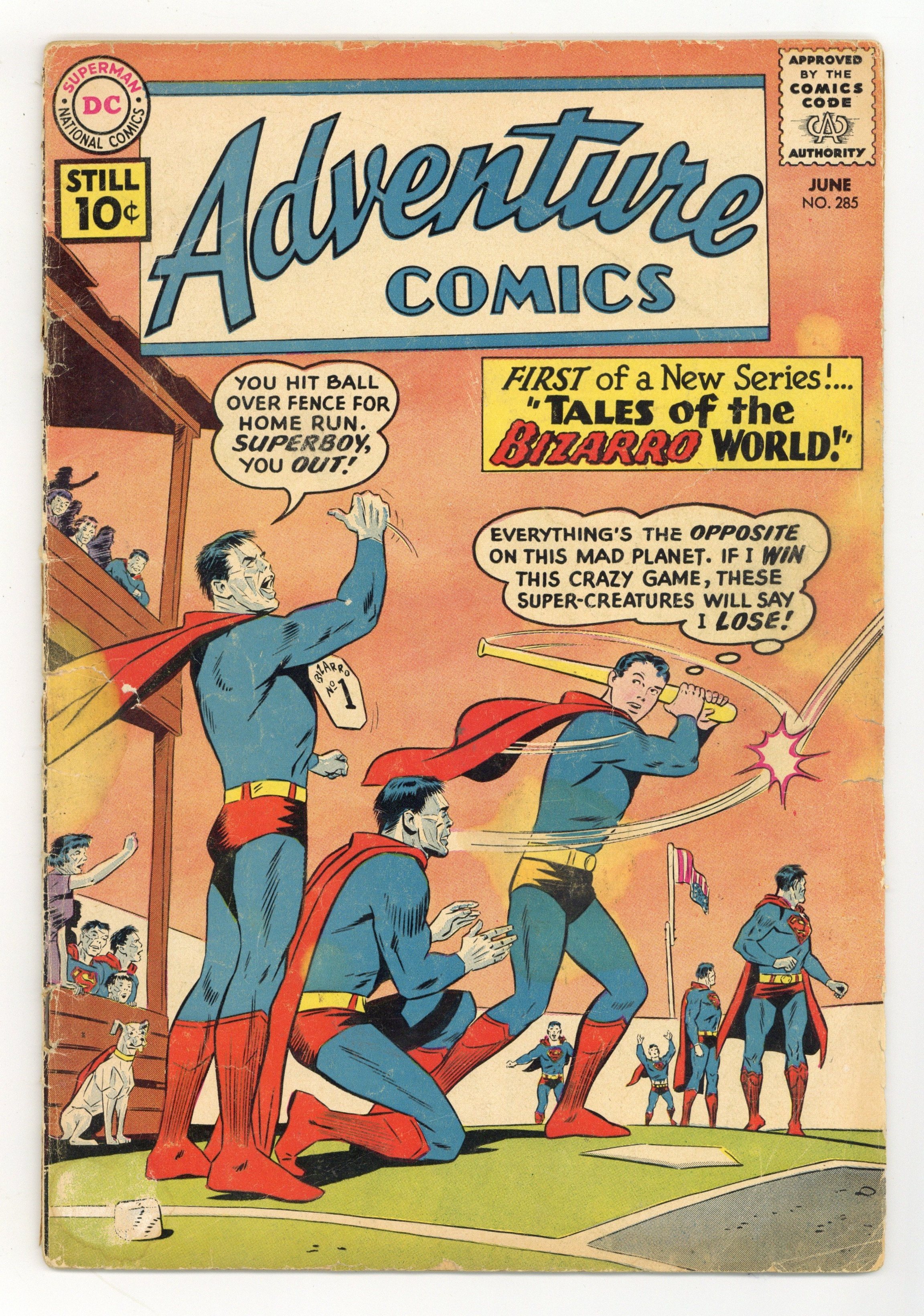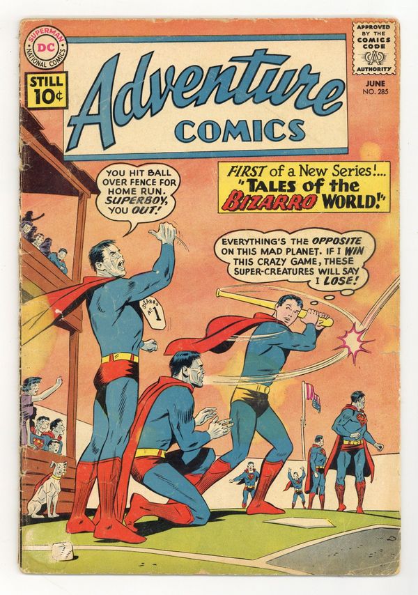 Cover pencils by Curt Swan, inks by Stan Kaye. Gravity Girl of Smallville!, script by Robert Bernstein, pencils by Curt Swan, inks by Stan Kaye; Lana gets an anti-gravity belt. The Shame of the Bizarro Family!--Tales of the Bizarro World, script by Jerry Siegel, pencils by Wayne Boring, inks by Stan Kaye; Bizarro Junior No. 1 is too smart. 36 pages, Full Color. Cover price $0.10.
