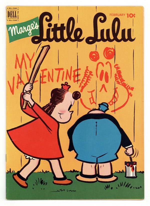 Published Feb 1952 by Dell/Gold Key.$22.00Lulu Goes Skating one-page story. Mumps; Lulu figures out a way to get the West Side gang out of the Fellers' clubhouse. The Apple Watcher; The Fellers find out Lulu is going to be watching Joe's fruit stand all alone. The Merry-Go-Roundup; Lulu tells Alvin about a merry-go-round horse that came to life. Riding the Pookle; Tubby impresses the West Side gang by pretending to swim through a pipe. Tubby Plays Football one-page story. Two-page text story, Lulus Diry ("Diary"). Back cover has advertisement for Dell Comics Club. 36 pages, full color. Cover price $0.10.