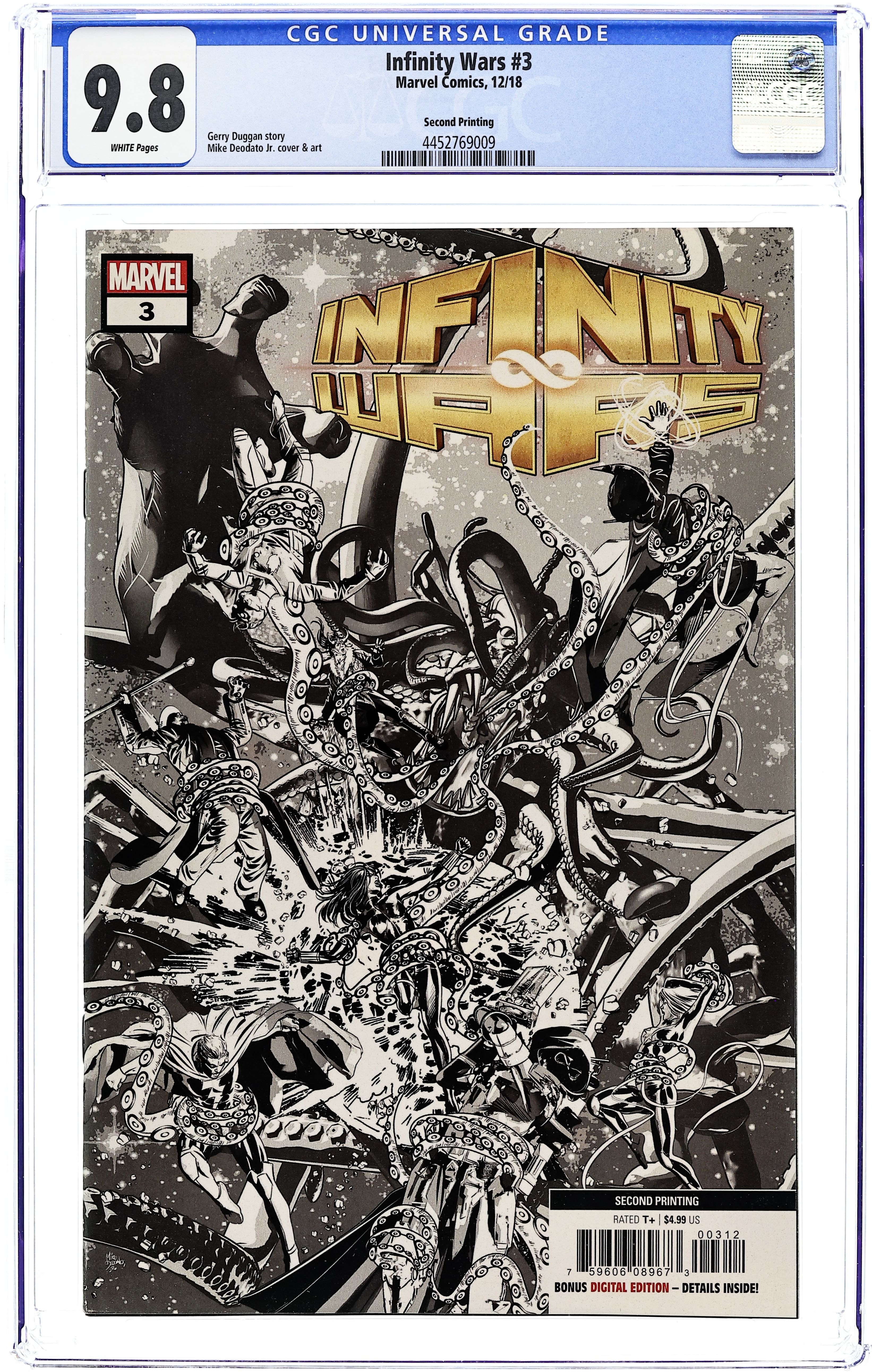 2nd Printing. Written by Gerry Duggan. Art and Cover by Mike Deodato. WHO ARE THE INFINITY WARPS? With Requiem tearing through the Marvel Universe, Loki whispering around its fringes and a new threat looming to devour everything, the very fabric of reality warps around the heroes of Earth… and the only way through winds through infinity itself! 36 pages, full color. Rated T+ Cover price $4.99.