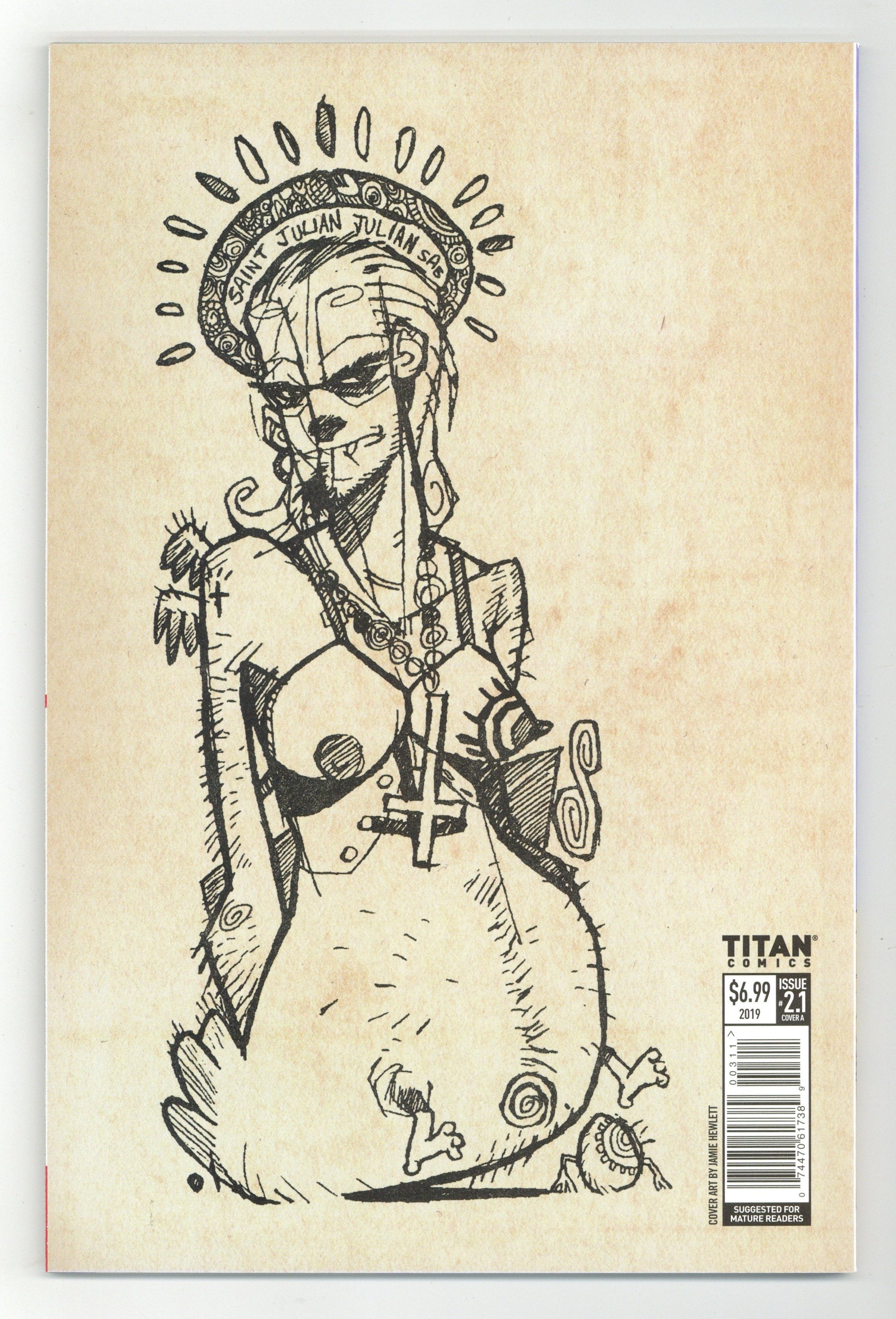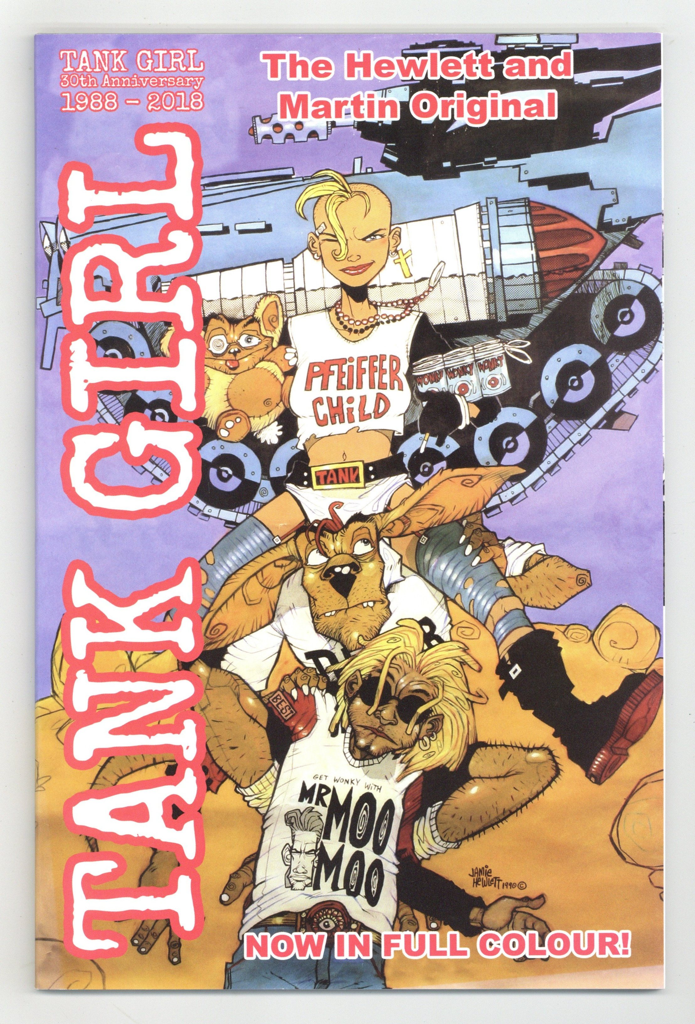Published Jun 2019 by Titan Comics.$16.00Written by Alan Martin. Art and Cover by Jamie Hewlett. A full year of classic Tank Girl from co-creators ALAN MARTIN and JAMIE HEWLETT (GORILLAZ)! The seminal strips, colored for the first time! Enjoy the punk icon's original adventures as they were always intended to be seen! These critically acclaimed prestige editions are packed with contemporary covers & unseen art! 64 pages, full color. Mature Readers Cover price $6.99.