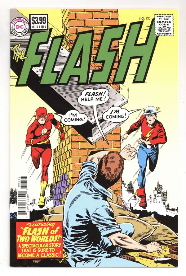 $15.00Written by Gardner Fox. Art by Carmine Infantino and Joe Giella. Cover by Carmine Infantino and Murphy Anderson. The classic tale from 1961 that introduced the concept of the Multiverse to the pages of DC Comics is reprinted here! There's a crimewave in Central City, and the Flash will need help to stop the villains' spree-fortunately, help is on the way in the form of the Golden Age Fastest Man Alive, Jay Garrick! 32 Pages, full color. Rated T Cover price $3.99.