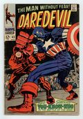 Tags: Marvel Legacy Numbering: Daredevil (part 43), Daredevil$28.00Cover pencils by Jack Kirby, inks by Joe Sinnott. In Combat With Captain America!, script by Stan Lee, pencils by Gene Colan, inks by Vince Colletta; Busted up over his breakup with Karen, DD takes it out on Captain America during a charity event. 36 pgs; Daredevil's origin retold. 36 pgs. Cover price $0.12. Cover price $0.12.