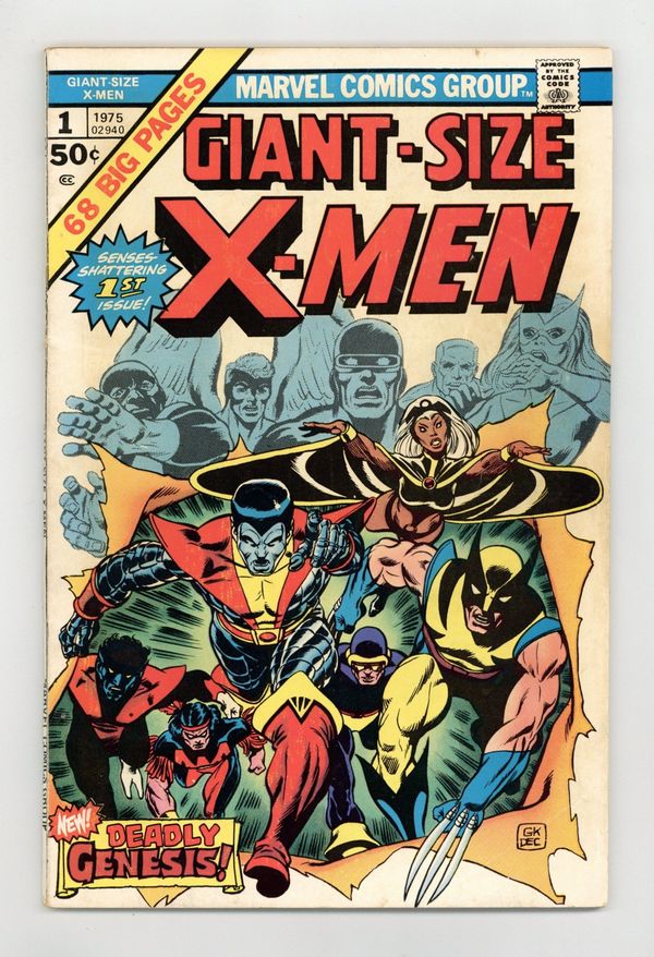 Cover pencils by Gil Kane and Dave Cockrum (original X-Men figures), inks by Dave Cockrum. 1st appearance of the new X-Men in "Second Genesis," script by Chris Claremont (plot assist, uncredited) and Len Wein (plot, script), art by Dave Cockrum; The old X-Men are captured by Krakoa, the Living Island, and Professor X forms a new team to rescue them; First appearances of Nightcrawler, Storm, Colossus, and Thunderbird; 2nd full appearance of Wolverine after Incredible Hulk 181; Appearances of Cyclops, Iceman, the Angel, Marvel Girl, the Banshee, Sunfire, Havok, Lorna Dane, and Mr. Fantastic (of the Fantastic Four); Beast cameo; Continued in X-MEN #94. "Call Him... Cyclops!", script by Roy Thomas, pencils by Werner Roth, inks by John Verpoorten; Explanation of Cyclops' powers. "I, the Iceman," script by Arnold Drake, pencils by Werner Roth, inks by John Verpoorten; Explanation of Iceman's powers. "The Female of the Species!", script by Linda Fite, pencils by Werner Roth, inks by Sam Grainger; Explanation of Marvel Girl's powers. 68 pgs., full color. Cover price $0.50.