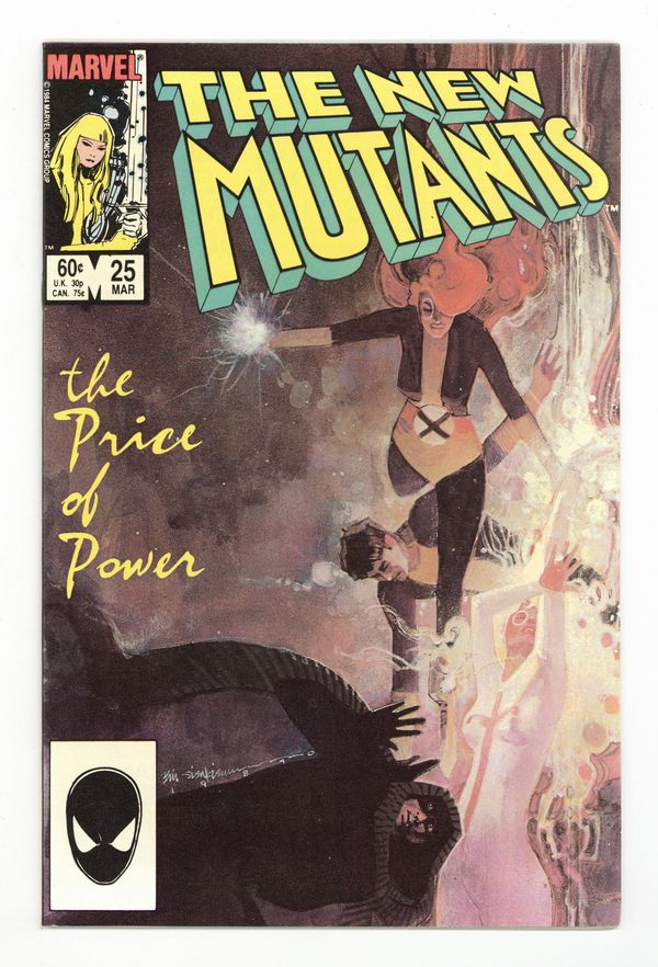 Direct Edition. Last 60-cent cover price issue. 1st appearance of Legion (cameo). Cover art by Bill Sienkiewicz. The Only Thing to Fear . . ., script by Chris Claremont, art by Bill Sienkiewicz; Professor X talk with Cloak and Dagger, then asks Magik to transport them all to Limbo; Magik and Rogue succeed in Cloak and Dagger's powers from Sunspot and Wolfsbane back to Cloak and Dagger; Cloak and Dagger renew their fight against injustice. David Charles Haller and Lila Cheney illustrations by Bill Sienkiewicz. 36 pgs. $0.60. Cover price $0.60.