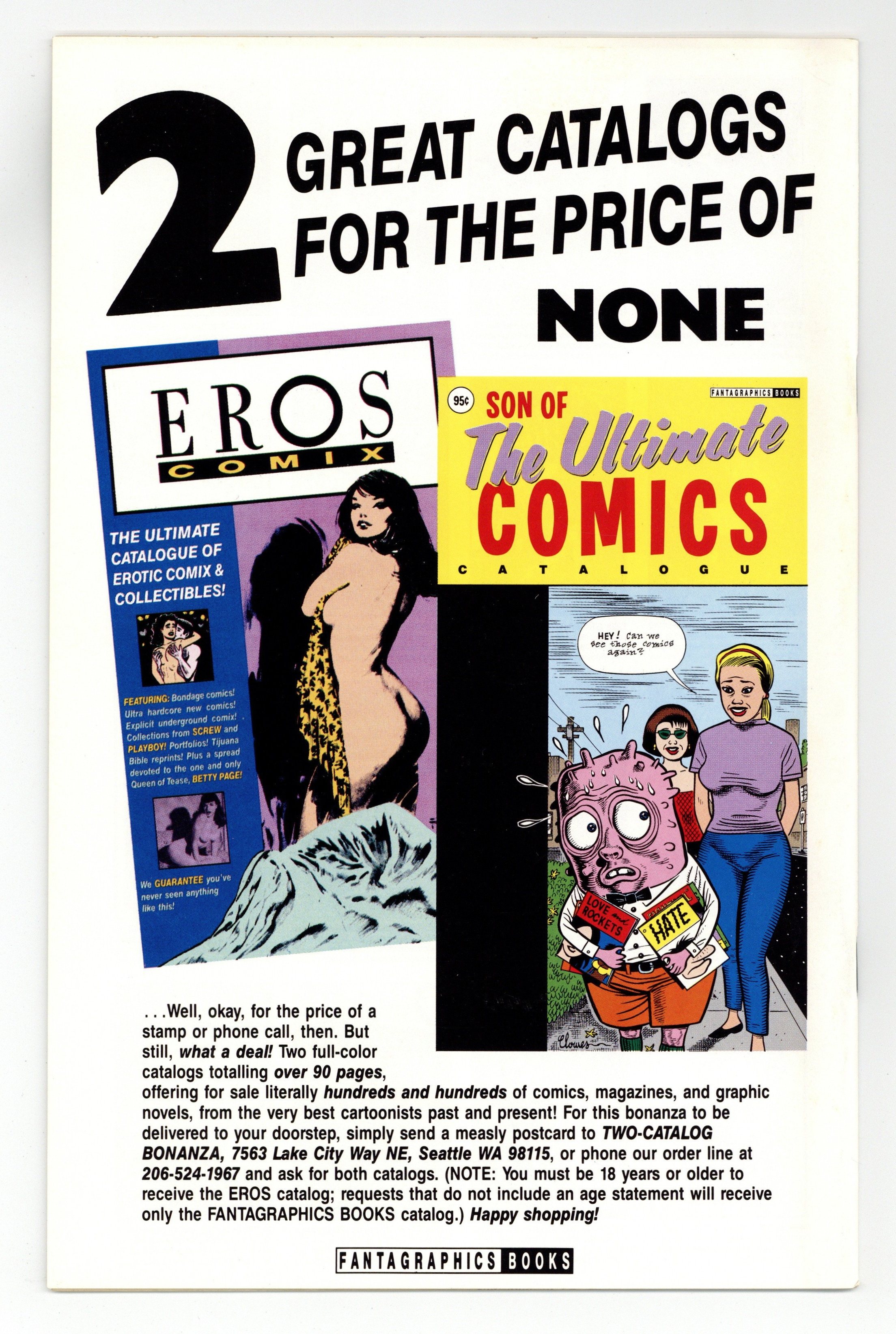 Published Sep 1991 by Eros Comix.$50.00- This is a consignment item. A 3% buyer's premium ($1.50) will be charged at checkout. It has been graded by MyComicShop's experienced graders.