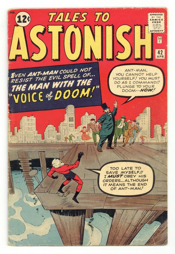 Cover by Jack Kirby and Sol Brodsky. The Voice of Doom!, script by Stan Lee and Larry Lieber, art by Don Heck; A radio spokesman gains a hypnotic voice from radiation, and decides to test it by turning the people against Ant-Man. Secret Mission text story. The Eyes of the Mummy!, script by Stan Lee and Larry Lieber, art by Joe Sinnott; A crook steals a jewel from an ancient dummy, but the dead pharaoh's hypnotic powers make him see only death until he returns it. I Am Not Human!, script by Stan Lee, art by Steve Ditko; A humanoid robot escapes his creator's lab with an artificial face and clothes in order to live among humans as a man. 36 pgs., full color. $0.12. Cover price $0.12.