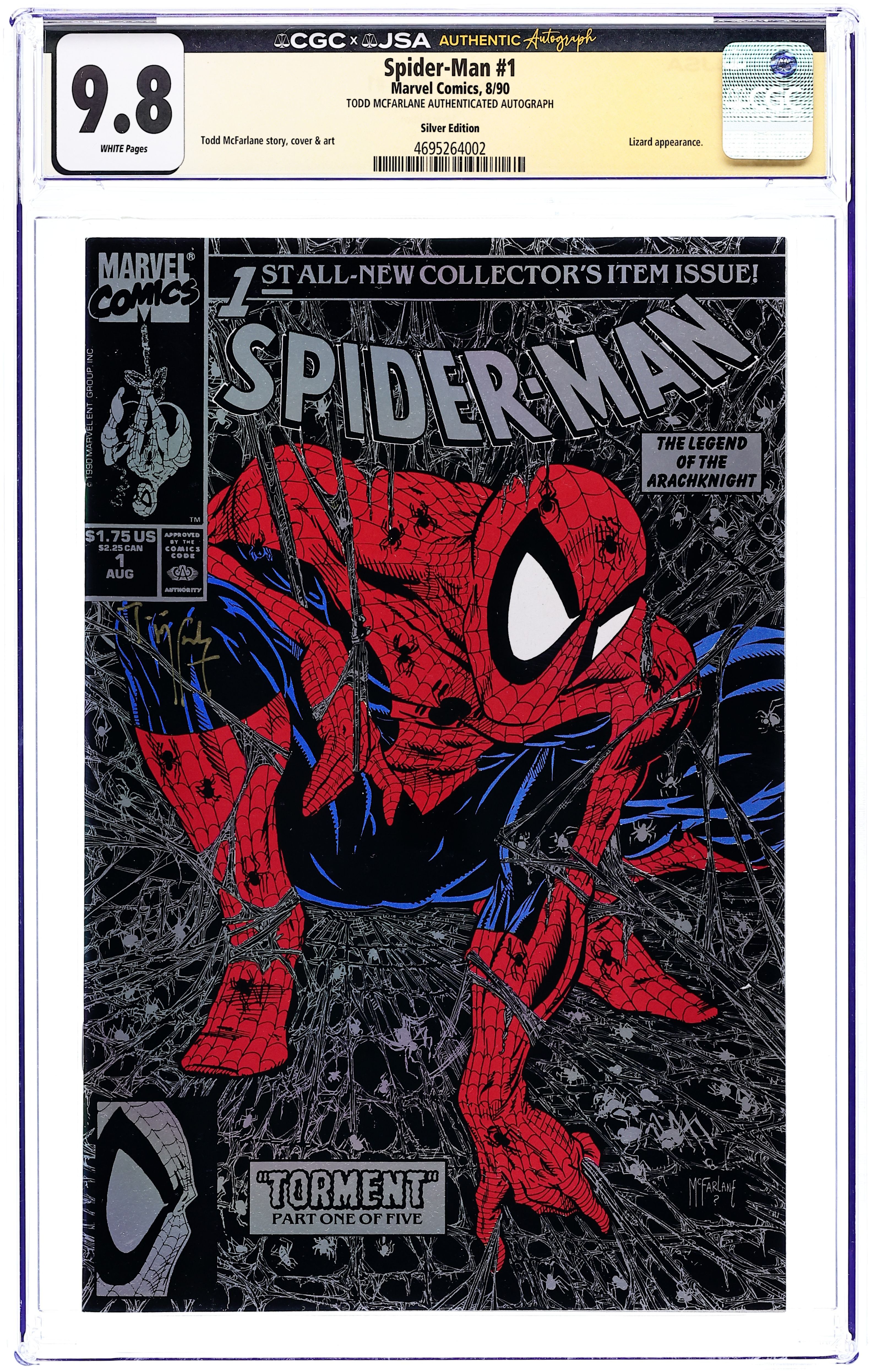 Tags: Spider-ManSpider-Man (1990 Marvel) 1SILVER CGC 9.8 JSA McFarlane McFarlane Silver Variant
