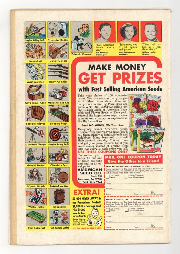 Starts Apr 20 Cover pencils by Carmine Infantino, inks by Joe Giella. "The Penguin Takes a Flyer--Into the Future!", script by Gardner Fox, pencils by Sheldon Moldoff (as Bob Kane), inks by Joe Giella; Penguin attempts to fool the Caped Crusaders into believing that his new tricks are based on futuristic technology. When this fails and his gang is captured the Fowl villain begins using robotic umbrellas against the Dynamic Duo. Letters from letter hack Guy H. Lillian III and Marvel colorist and assistant editor Irene Vartanoff. Cap's Hobby Hints activity half-page by Henry Boltinoff. Countdown on Excellence public service, script by Jack Schiff, art by Sheldon Moldoff; Jerry gets a lecture from his father on the importance of doing every job right. 36 Pages, Full Color. Cover price $0.25.