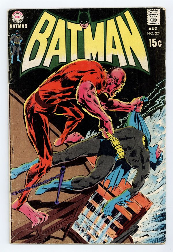 Cover pencils by Neal Adams, inks by Dick Giordano. "Carnival of the Cursed," script by Denny O'Neil, pencils by Irv Novick, inks by Dick Giordano; Investigating the murder of a jazz musician in New Orleans, Batman encounters the powerful Moloch and his gang, who are seeking the victim's trumpet for a hidden map to a gold mine; After Batman's first encounter against the beastly Moloch, he starts following the clues left by the thugs and he realizes that Moloch's gang has kidnapped one of the late musician's friends. Letter from comics writer Martin Pasko. 36 Pages, Full Color. Cover price $0.15.