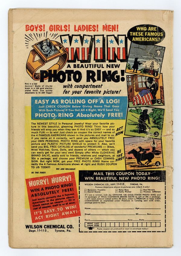 $225.00- INCOMPLETE. Ad page torn in half, does not interrupt art or story. 1.5" Cumulative spine split. Water damage.