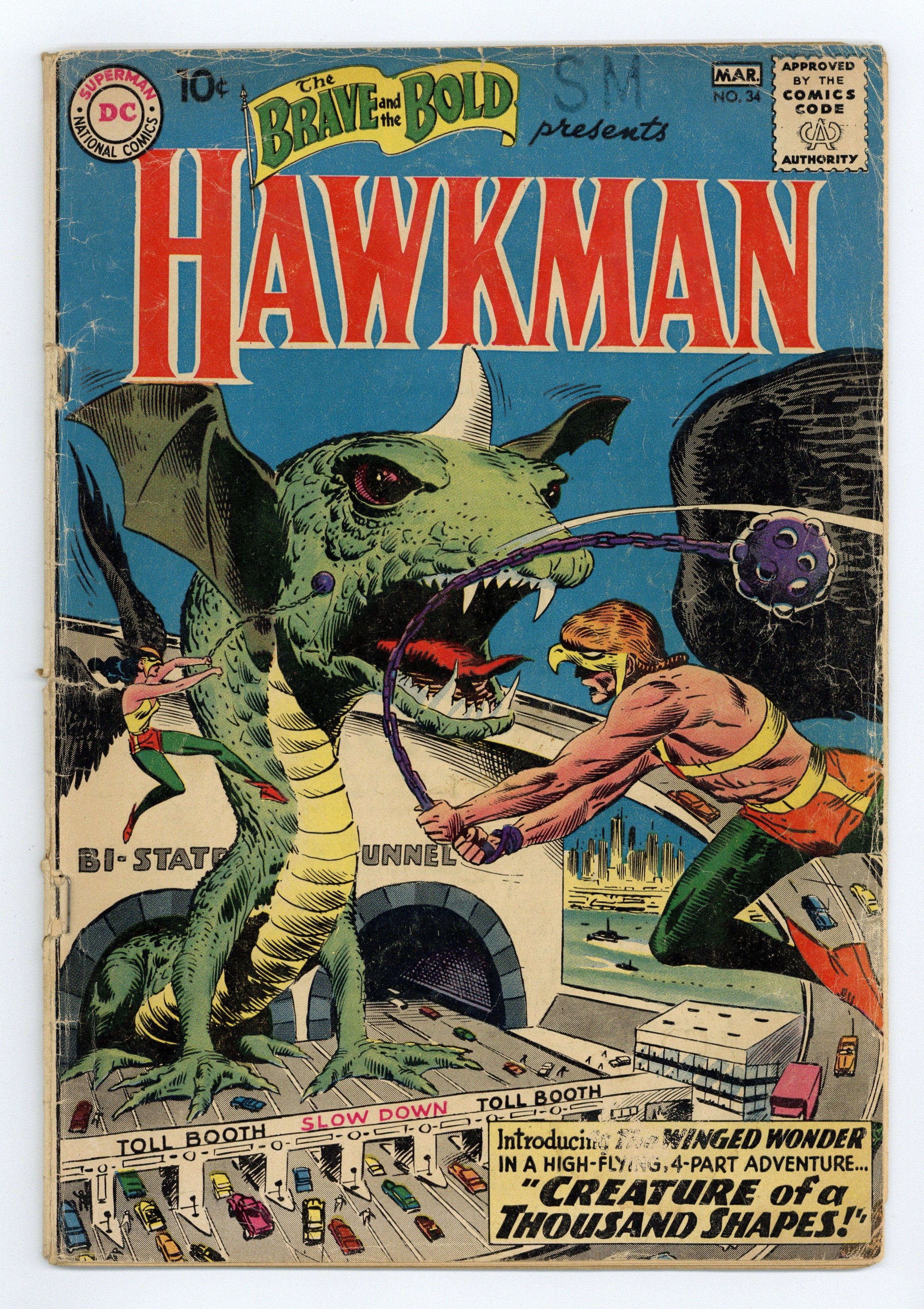 Cover by Joe Kubert. 1st Silver Age appearance of Hawkman in "Creature of a Thousand Shapes!", script by Gardner Fox, art by Joe Kubert; Katar and his wife Shayera, police officers from the Planet Thanagar, come to Earth in pursuit of a shape-shifting criminal from their world; Police Commissioner Emmett helps them to establish secret identities, and, after they have succeeded in their mission, helps convince them to stay on Earth. Letter to the editor from comic writer Roy Thomas. 36 Pages, Full Color. Cover price $0.10.
