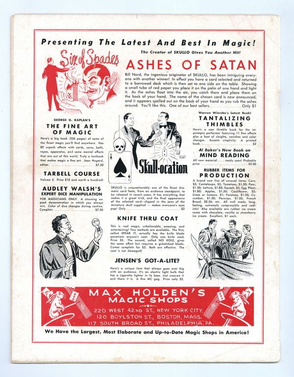 Published Nov 1948 by Conjurors' Press.$11.00- Spine split 10%. Water damage: Slight. Staple rust: Slight.