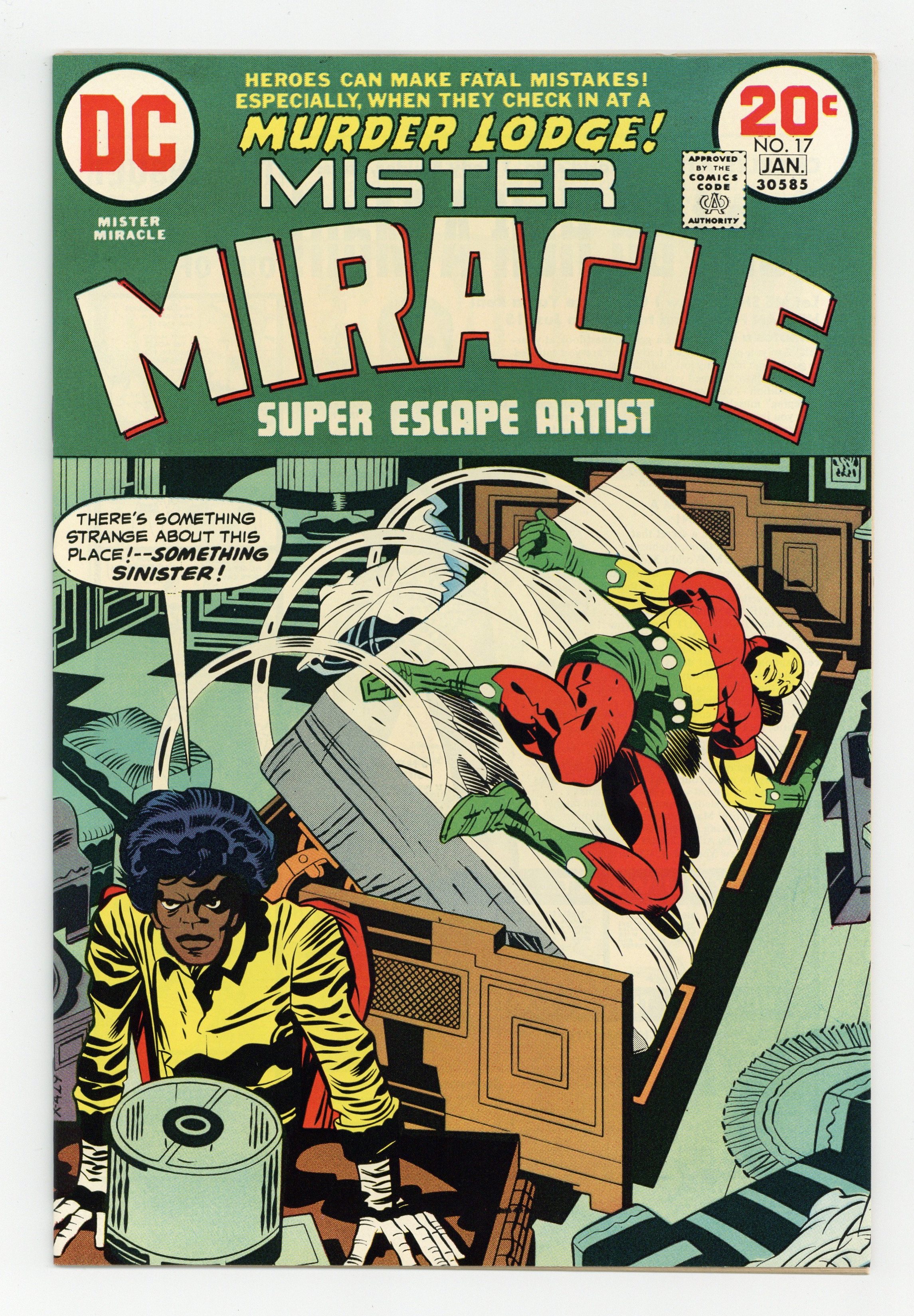 "Murder Lodge." Mister Miracle and company check into the Murder Lodge and engage in battle with Mad Merkin, Della the Dinosaur, and Little Bullets. Script, pencils, and cover by Jack Kirby. Inks by Mike Royer. Cover price $0.20.