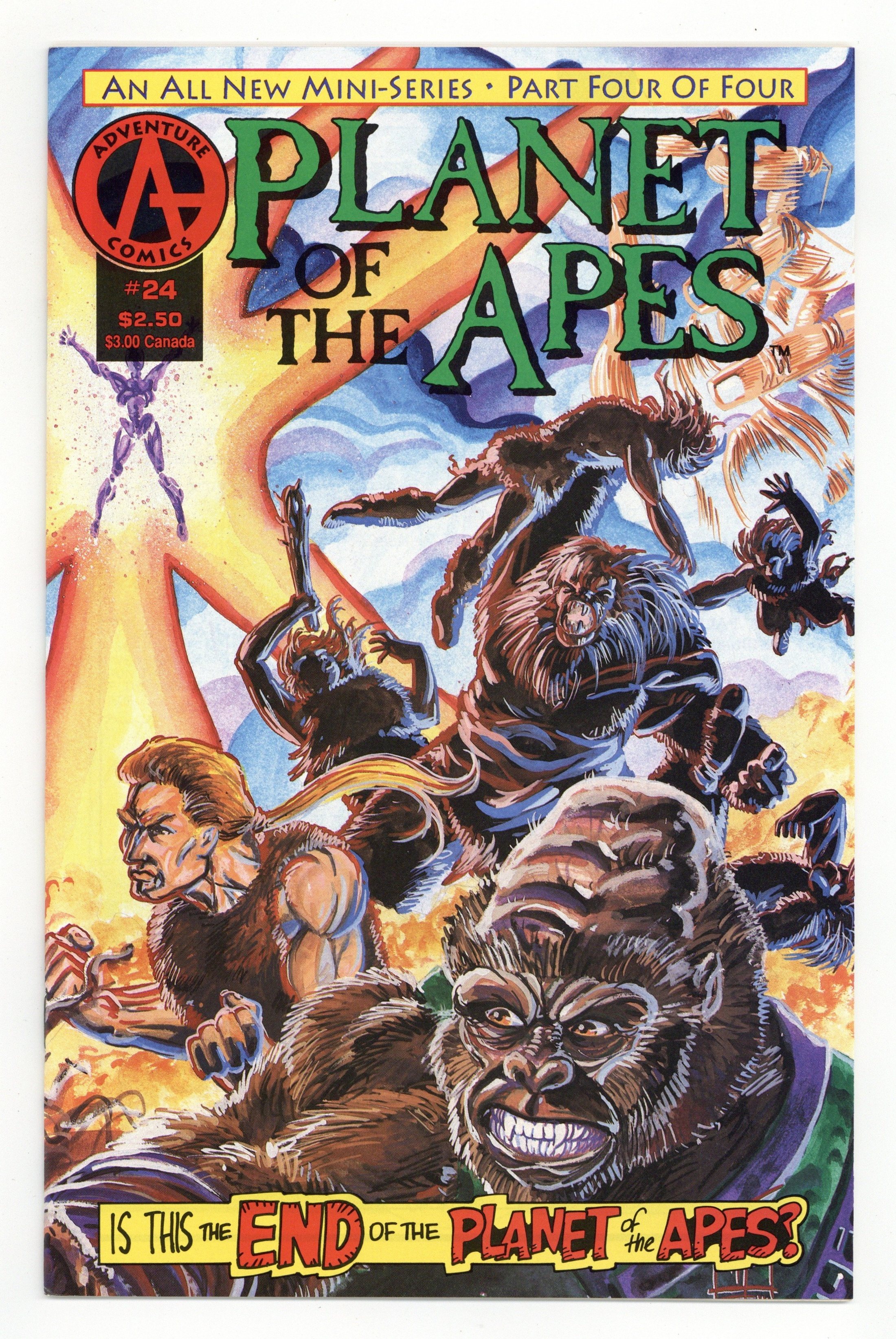 THE TERROR BENEATH, Part 4 of 4. Death and destruction come to Ape City in this direct tie-in to the storyline from the 4th Apes movie, Conquest of the Planet of the Apes. In the conclusion to this 4-part extravaganza, several major characters will die and the face of Ape City will change forever! Written by Charles Marshall, with art by M.C. Wyman and Peter Murphy. Cover by Terry Pallot. Cover price $2.50.