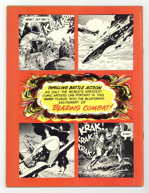 Stories in this issue include: "Special Forces" Written by Archie Goodwin. Art by Jerry Grandenetti and Joe Orlando (art credited solely to Orlando). "Foragers" Written by Archie Goodwin. Art by Reed Crandall. "U-Boat" Written by Archie Goodwin. Art by Gene Colan. "Survival" Written by Archie Goodwin and Alex Toth. Art by Alex Toth. "The Battle of Britain!" Written by Wally Wood. Art by Wally Wood and Dan Adkins (art credited solely to Wood). "Water Hole!" Written by Archie Goodwin. Art by Gray Morrow. "Souvenirs!" Written by Archie Goodwin. Art by John Severin. Includes letter by publisher Richard Kyle. Cover art by Frank Frazetta. Cover price $0.35.