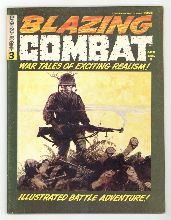$25.50Stories in this issue include: "Special Forces" Written by Archie Goodwin. Art by Jerry Grandenetti and Joe Orlando (art credited solely to Orlando). "Foragers" Written by Archie Goodwin. Art by Reed Crandall. "U-Boat" Written by Archie Goodwin. Art by Gene Colan. "Survival" Written by Archie Goodwin and Alex Toth. Art by Alex Toth. "The Battle of Britain!" Written by Wally Wood. Art by Wally Wood and Dan Adkins (art credited solely to Wood). "Water Hole!" Written by Archie Goodwin. Art by Gray Morrow. "Souvenirs!" Written by Archie Goodwin. Art by John Severin. Includes letter by publisher Richard Kyle. Cover art by Frank Frazetta. Cover price $0.35.