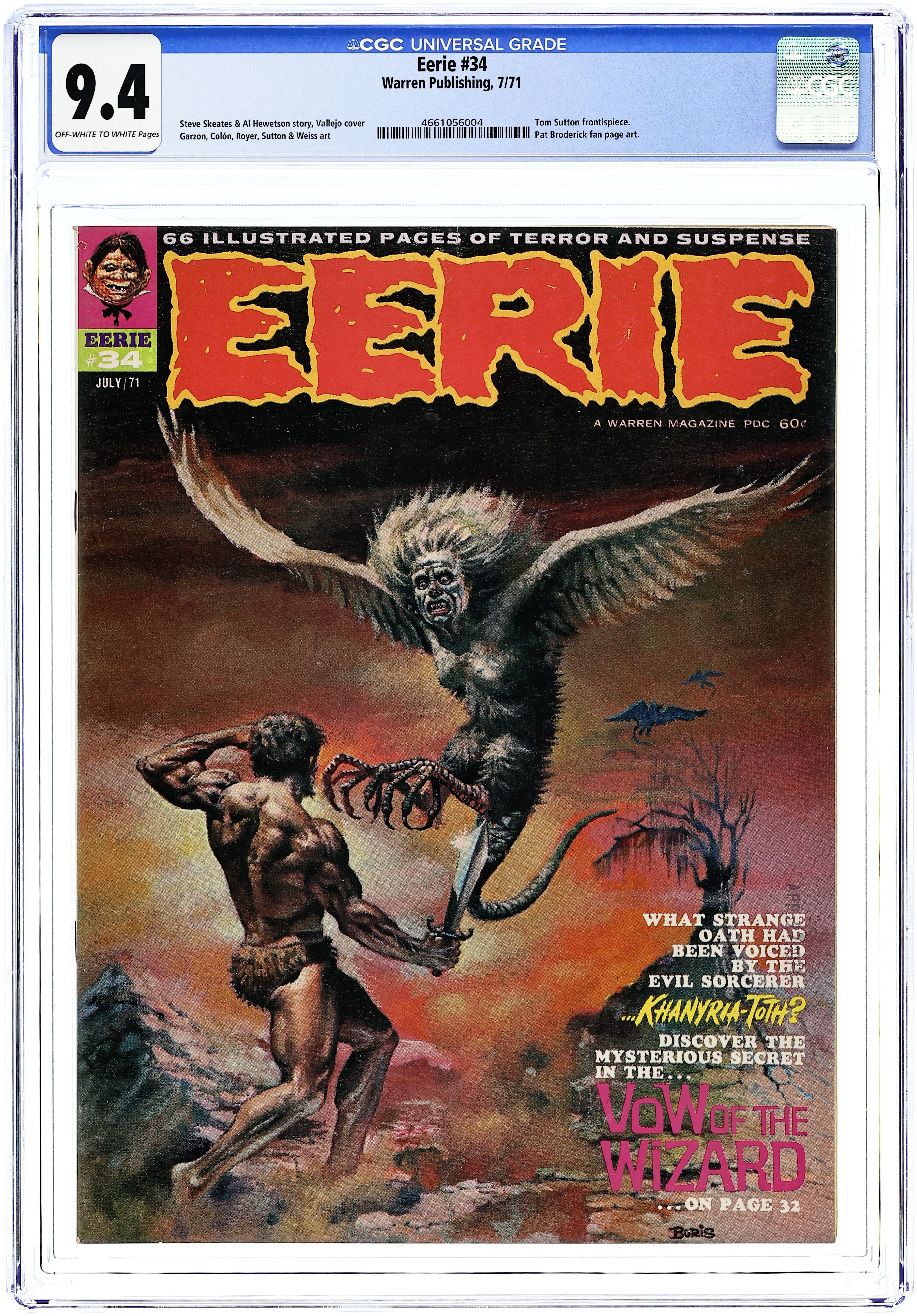 Stories in this issue include: Parting is Such Sweet Horror by Tom Sutton; Eye of Cyclops by Buddy Saunders (owner of Lone Star Comics!) and Jaime Brocal; He Who Laughs Last...is Grotesque by Al Hewetson and Mike Royer; Food for Thought by Steve Skeates, Bill Fraccio, and Tony Tallarico; The Vow of the Wizard by Ernie Colon and Frank McLaughlin; The Sound of Wings by F. Paul Wilson and Carlos Garzon; and Lair of the Horned Man by Alan Weiss. Pat Broderick makes second appearance in fan page. Cover art by Boris Vallejo. Cover price $0.60.