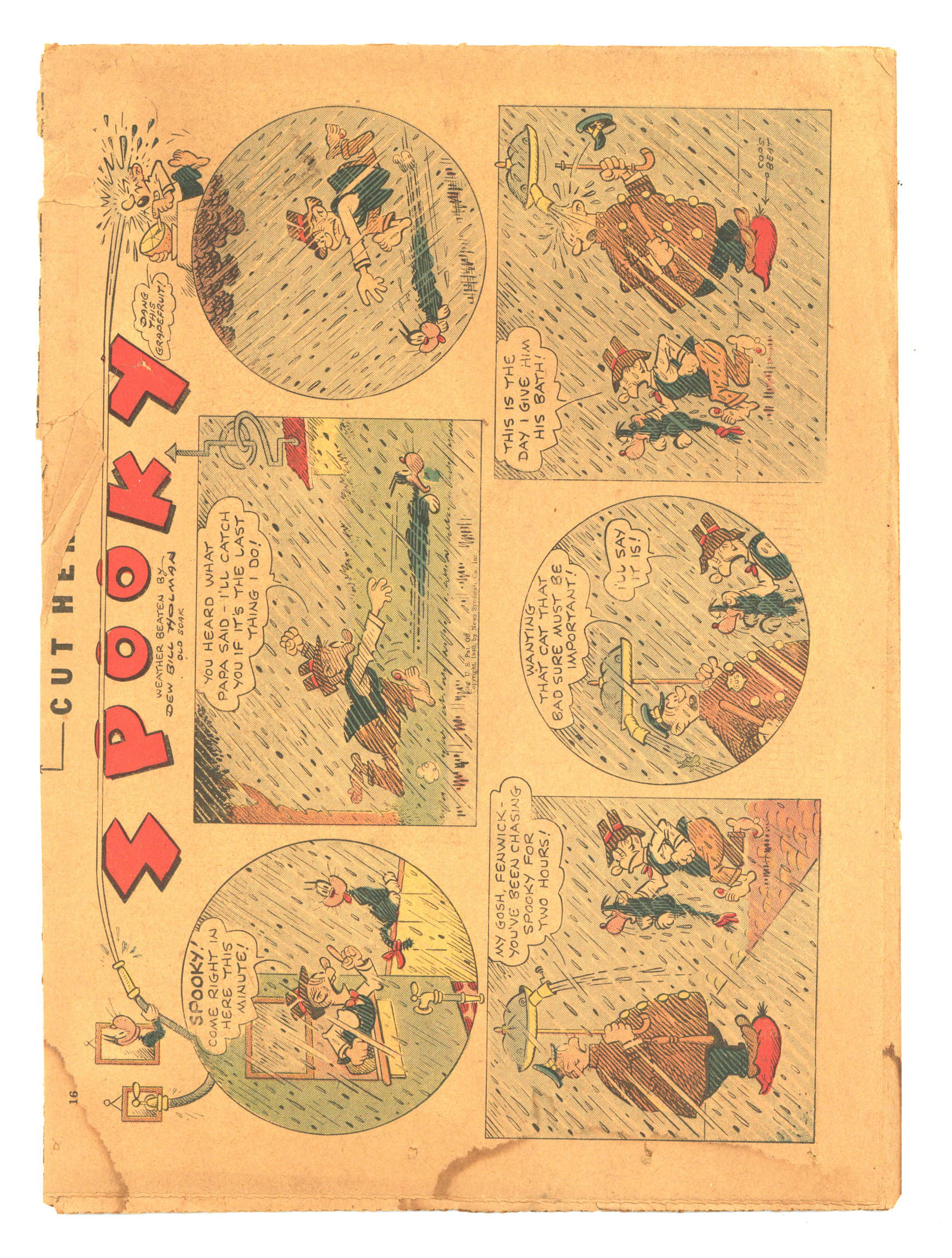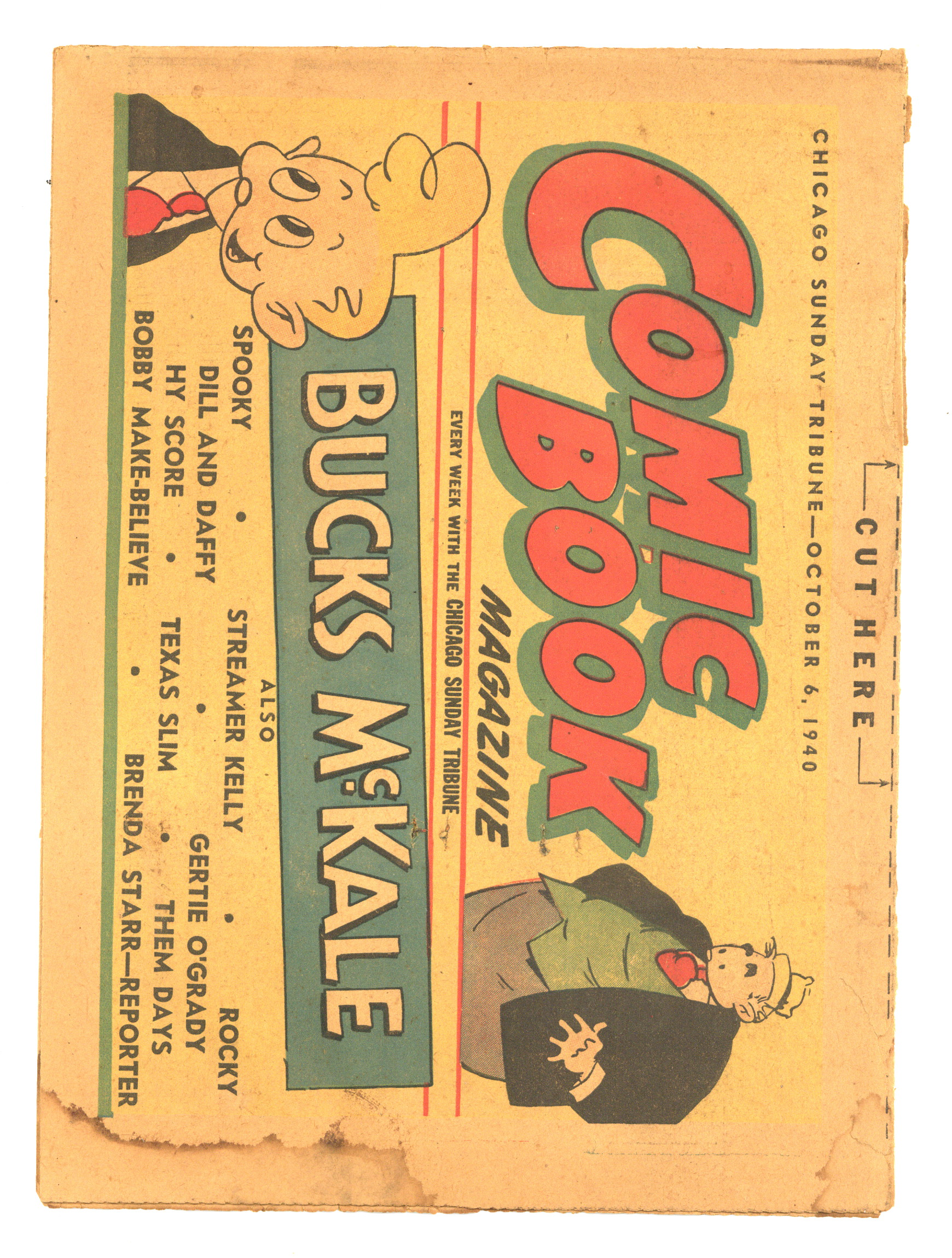 October 6, 1940. Comic supplement included with the Chicago Tribune each Sunday. In this issue: Bucks McKale, Spooky, Streamer Kelly, Rocky, Dill and Daffy, Gertie O'Grady, Hy Score, Texas Slim, Them Days, Bobby Make-Believe, and Brenda Starr. Loose folded newsprint pages, 10.75" x 7.75", 16 pages, full color.