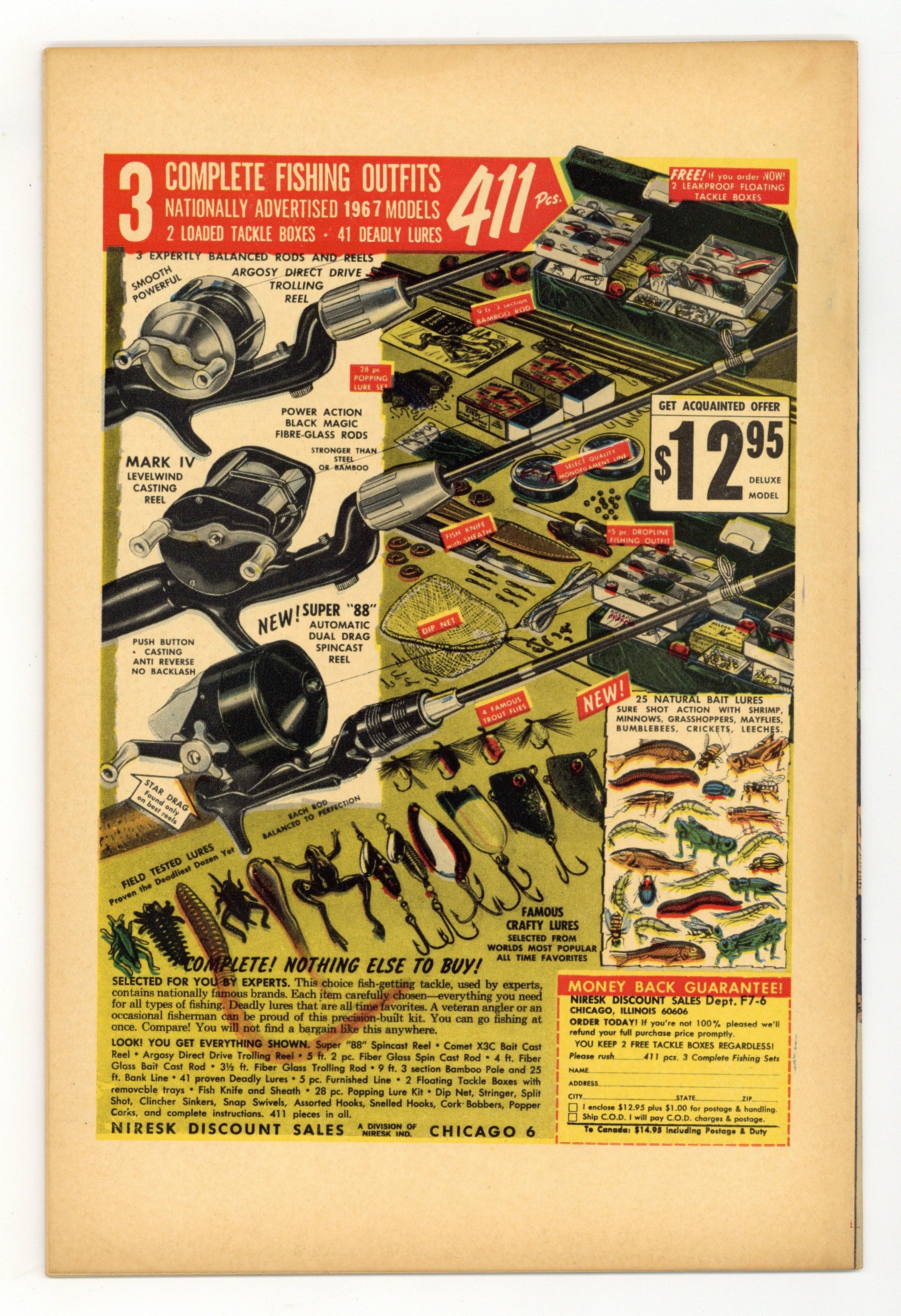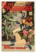 Published Jul 1967 by Charlton Comics Group.$90.00Cover by Pat Boyette. Stories and art by Pat Boyette, Bill Montes, Ernie Bache, and Joe Gill. Diplomat Chris Smith is so dedicated to the cause of peace that he decides he will fight for it. So he becomes the Peacemaker, the first version of the character later revived by DC Comics (and the inspiration for the Comedian from Watchmen). Peacemaker must rescue beautiful scientist Gerda Hain from the clutches of mad scientist Lucetti. But Lucetti has created an undersea world of fish-people to wait out the coming nuclear war, and he wants Gerda to join them. In the backup story, special-forces team the Fightin' Five must deal with a special prisoner. Our Future World; Special Prisoner. 32 pages, Full Color. Cover price $0.12.