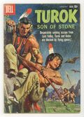 Published Mar 1960 by Dell/Gold Key.$20.50Painted cover. Turok in "The Way Out of Lost Valley" in which Turok and Andar's efforts to find a way out of the valley lead to a battle with cavemen and "Return of the Giants" in which Turok and Andar face the return of the tribe of giants who appeared in issue number 16. Issue also has backup feature "Young Earth - The Mystery In Rock," a one-page text feature "The Spirit Cat." No art/story credits given. 36 pages, full color. Cover price $0.10.