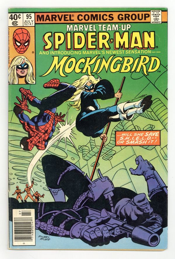 $16.00Newsstand Edition. "And No Birds Sing!" Guest-starring Spider-Man and Mockingbird (1st appearance). Script by Steven Grant. Art by Jimmy James (breakdowns) and Bruce Patterson (finishes). Cover by Frank Miller and Bob McLeod. A rogue SHIELD branch director tricks the web-slinger into believing that Nick Fury's life is in jeopardy! Specifically, from a former SHIELD operative...Barbara Morse! However, Mockingbird is actually trying to save Nick Fury. Will Spider-Man realize that in time? First appearance of Bobbi Morse as Mockingbird. (Notes: After a cameo appearance in Contest of Champions 1, Mockingbird appears next in the first Hawkeye Limited Series published in 1983. The letters page contains a brief essay from Mark Gruenwald about the creation of Mockingbird.) 36 pages. Cover price $0.40.